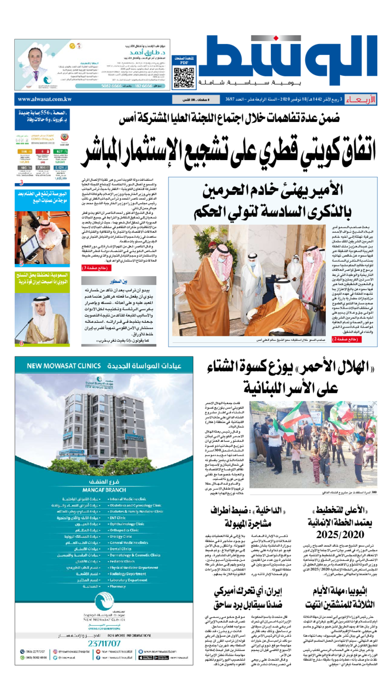 آخر الأخبار جرائم وقضايا “الجمارك” تضبط 29 ألف علبة مشروبات كحولية قادمة من دولة آسيوية في ميناء الشويخ 9 يونيو، 2024 محليات ممثلة عن دولة الكويت الطبيبة الكويتية أسماء الكندري تشارك في المؤتمر العالمي للمناظير في إيطاليا 8 يونيو، 2024 محليات “الصحة”: اكتمال وصول فريق الخدمات الطبية ببعثة الحج الكويتية لمكة المكرمة 8 يونيو، 2024 محليات “الصحة” تحدد 8 مراكز للصحة المدرسية لاستقبال الطلبة المبتعثين 8 يونيو، 2024 عربي وعالمي “الصحة العالمية”: تسجيل أول وفاة لشخص مصاب بـ«أنفلونزا الطيور» 7 يونيو، 2024 محليات عناوين الصحف الكويتية ليوم الأربعاء 18 نوفمبر 2020 محرر المحليات18 نوفمبر، 2020أضف تعليق1 دقائق جريدة الجريدة جريدة الأنباء جريدة القبس جريدة الوسط الوسومTop عناوين الصحف المحلية من الممكن أن يعجبك جرائم وقضايا “الجمارك” تضبط 29 ألف علبة مشروبات كحولية قادمة من دولة آسيوية في ميناء الشويخ محليات ممثلة عن دولة الكويت الطبيبة الكويتية أسماء الكندري تشارك في المؤتمر العالمي للمناظير في إيطاليا محليات “الصحة”: اكتمال وصول فريق الخدمات الطبية ببعثة الحج الكويتية لمكة المكرمة محليات “الصحة” تحدد 8 مراكز للصحة المدرسية لاستقبال الطلبة المبتعثين عربي وعالمي “الصحة العالمية”: تسجيل أول وفاة لشخص مصاب بـ«أنفلونزا الطيور» تكنولوجيا رش السحب بملح البحر.. تجربة “ثورية” لتبريد كوكب الأرض أضف تعليق أضغط هنا لإضافة تعليق إلغاء الردالتعليقالاسم البريد الإلكتروني الموقع الإلكتروني Δ هذا الموقع يستخدم خدمة أكيسميت للتقليل من البريد المزعجة. اعرف المزيد عن كيفية التعامل مع بيانات التعليقات الخاصة بك processed.
