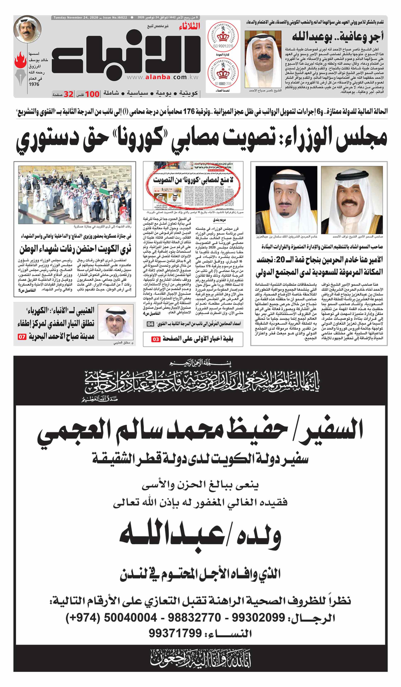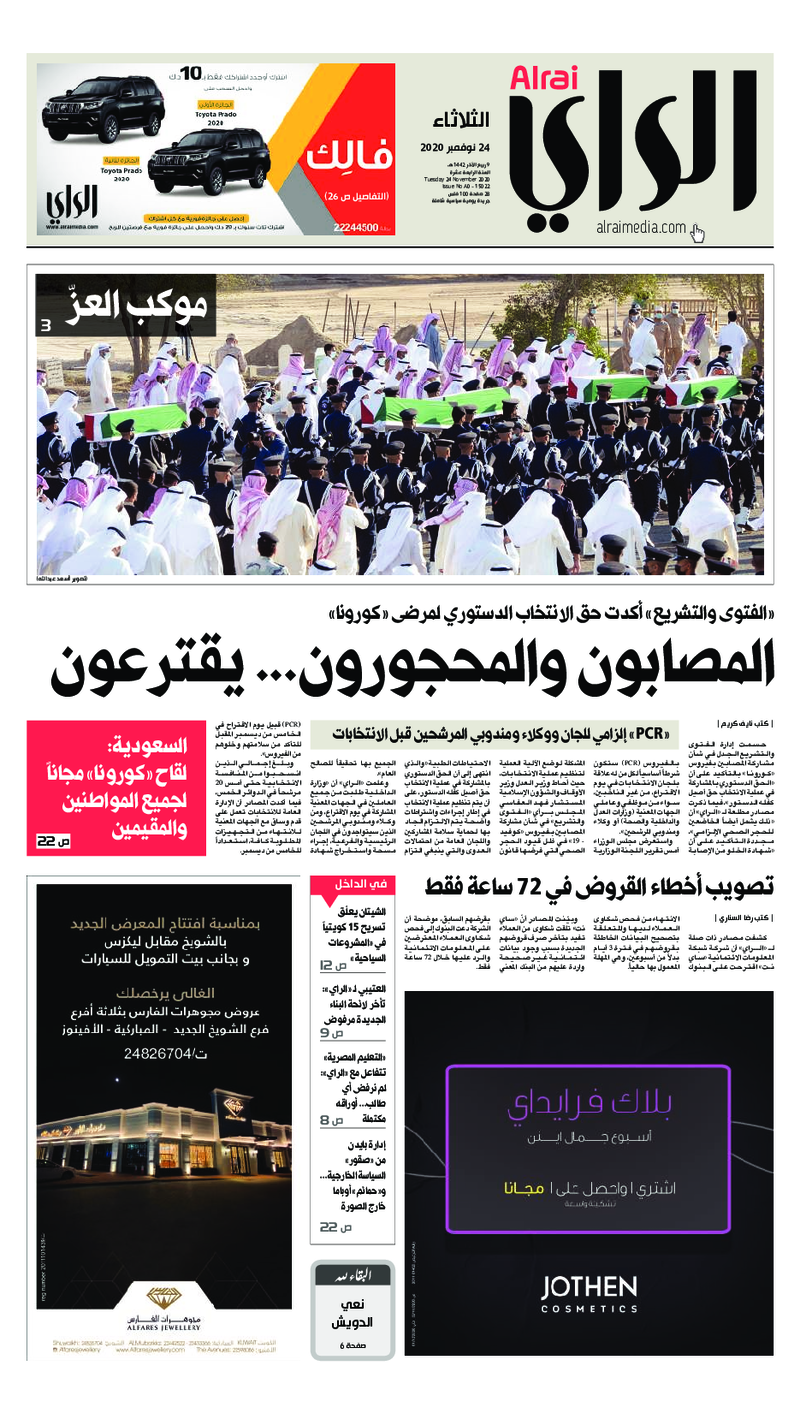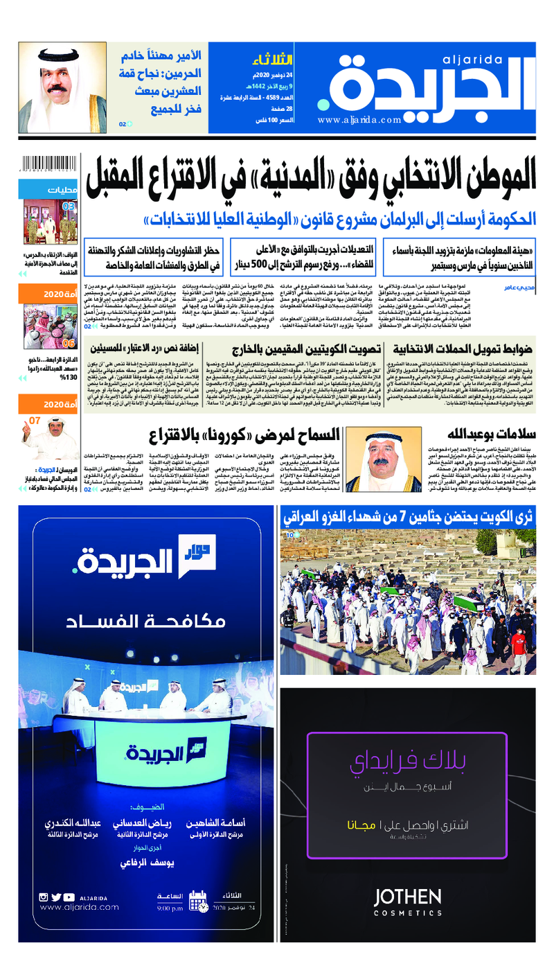 آخر الأخبار جرائم وقضايا “الجمارك” تضبط 29 ألف علبة مشروبات كحولية قادمة من دولة آسيوية في ميناء الشويخ 9 يونيو، 2024 محليات ممثلة عن دولة الكويت الطبيبة الكويتية أسماء الكندري تشارك في المؤتمر العالمي للمناظير في إيطاليا 8 يونيو، 2024 محليات “الصحة”: اكتمال وصول فريق الخدمات الطبية ببعثة الحج الكويتية لمكة المكرمة 8 يونيو، 2024 محليات “الصحة” تحدد 8 مراكز للصحة المدرسية لاستقبال الطلبة المبتعثين 8 يونيو، 2024 عربي وعالمي “الصحة العالمية”: تسجيل أول وفاة لشخص مصاب بـ«أنفلونزا الطيور» 7 يونيو، 2024 محليات عناوين الصحف الكويتية ليوم الثلاثاء 24 نوفمبر 2020 محرر المحليات24 نوفمبر، 2020أضف تعليق1 دقائق جريدة الجريدة جريدة الأنباء جريدة القبس جريدة الراي جريدة الوسط الوسومTop عناوين الصحف المحلية من الممكن أن يعجبك جرائم وقضايا “الجمارك” تضبط 29 ألف علبة مشروبات كحولية قادمة من دولة آسيوية في ميناء الشويخ محليات ممثلة عن دولة الكويت الطبيبة الكويتية أسماء الكندري تشارك في المؤتمر العالمي للمناظير في إيطاليا محليات “الصحة”: اكتمال وصول فريق الخدمات الطبية ببعثة الحج الكويتية لمكة المكرمة محليات “الصحة” تحدد 8 مراكز للصحة المدرسية لاستقبال الطلبة المبتعثين عربي وعالمي “الصحة العالمية”: تسجيل أول وفاة لشخص مصاب بـ«أنفلونزا الطيور» تكنولوجيا رش السحب بملح البحر.. تجربة “ثورية” لتبريد كوكب الأرض أضف تعليق أضغط هنا لإضافة تعليق إلغاء الردالتعليقالاسم البريد الإلكتروني الموقع الإلكتروني Δ هذا الموقع يستخدم خدمة أكيسميت للتقليل من البريد المزعجة. اعرف المزيد عن كيفية التعامل مع بيانات التعليقات الخاصة بك processed.