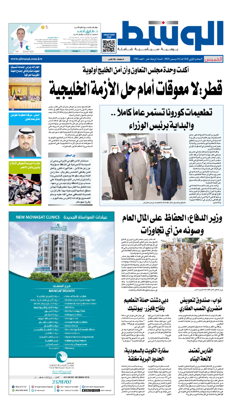 آخر الأخبار جرائم وقضايا “الجمارك” تضبط 29 ألف علبة مشروبات كحولية قادمة من دولة آسيوية في ميناء الشويخ 9 يونيو، 2024 محليات ممثلة عن دولة الكويت الطبيبة الكويتية أسماء الكندري تشارك في المؤتمر العالمي للمناظير في إيطاليا 8 يونيو، 2024 محليات “الصحة”: اكتمال وصول فريق الخدمات الطبية ببعثة الحج الكويتية لمكة المكرمة 8 يونيو، 2024 محليات “الصحة” تحدد 8 مراكز للصحة المدرسية لاستقبال الطلبة المبتعثين 8 يونيو، 2024 عربي وعالمي “الصحة العالمية”: تسجيل أول وفاة لشخص مصاب بـ«أنفلونزا الطيور» 7 يونيو، 2024 محليات عناوين الصحف الكويتية ليوم الخميس 24 ديسمبر 2020 محرر المحليات24 ديسمبر، 2020أضف تعليق1 دقائق جريدة الجريدة جريدة الأنباء جريدة القبس جريدة الراي جريدة الوسط الوسومTop عناوين الصحف المحلية من الممكن أن يعجبك جرائم وقضايا “الجمارك” تضبط 29 ألف علبة مشروبات كحولية قادمة من دولة آسيوية في ميناء الشويخ محليات ممثلة عن دولة الكويت الطبيبة الكويتية أسماء الكندري تشارك في المؤتمر العالمي للمناظير في إيطاليا محليات “الصحة”: اكتمال وصول فريق الخدمات الطبية ببعثة الحج الكويتية لمكة المكرمة محليات “الصحة” تحدد 8 مراكز للصحة المدرسية لاستقبال الطلبة المبتعثين عربي وعالمي “الصحة العالمية”: تسجيل أول وفاة لشخص مصاب بـ«أنفلونزا الطيور» تكنولوجيا رش السحب بملح البحر.. تجربة “ثورية” لتبريد كوكب الأرض أضف تعليق أضغط هنا لإضافة تعليق إلغاء الردالتعليقالاسم البريد الإلكتروني الموقع الإلكتروني Δ هذا الموقع يستخدم خدمة أكيسميت للتقليل من البريد المزعجة. اعرف المزيد عن كيفية التعامل مع بيانات التعليقات الخاصة بك processed.