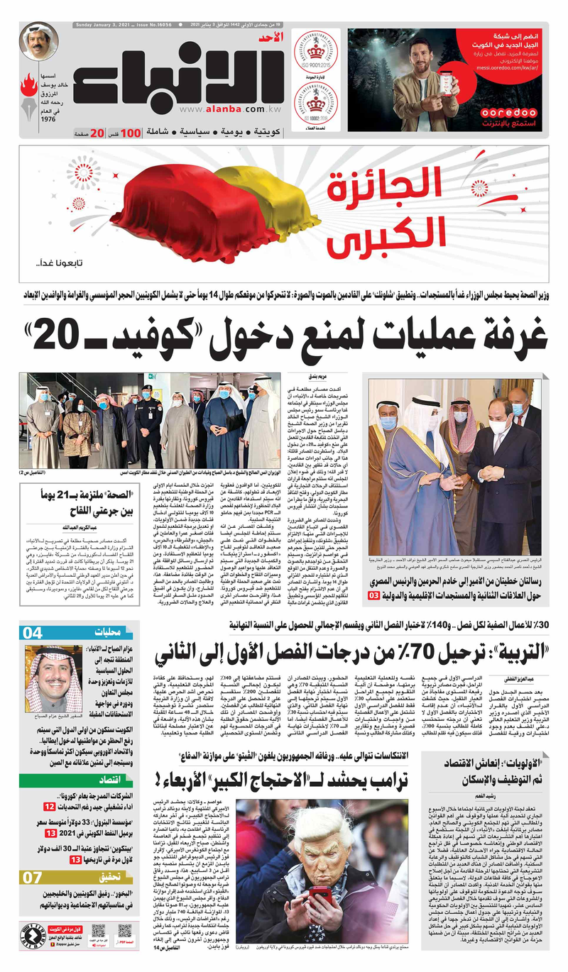 آخر الأخبار جرائم وقضايا “الجمارك” تضبط 29 ألف علبة مشروبات كحولية قادمة من دولة آسيوية في ميناء الشويخ 9 يونيو، 2024 محليات ممثلة عن دولة الكويت الطبيبة الكويتية أسماء الكندري تشارك في المؤتمر العالمي للمناظير في إيطاليا 8 يونيو، 2024 محليات “الصحة”: اكتمال وصول فريق الخدمات الطبية ببعثة الحج الكويتية لمكة المكرمة 8 يونيو، 2024 محليات “الصحة” تحدد 8 مراكز للصحة المدرسية لاستقبال الطلبة المبتعثين 8 يونيو، 2024 عربي وعالمي “الصحة العالمية”: تسجيل أول وفاة لشخص مصاب بـ«أنفلونزا الطيور» 7 يونيو، 2024 محليات عناوين الصحف الكويتية ليوم الأحد 03 يناير 2021 محرر المحليات3 يناير، 2021أضف تعليق1 دقائق جريدة الجريدة جريدة الأنباء جريدة القبس جريدة الوسط الوسومTop عناوين الصحف المحلية من الممكن أن يعجبك جرائم وقضايا “الجمارك” تضبط 29 ألف علبة مشروبات كحولية قادمة من دولة آسيوية في ميناء الشويخ محليات ممثلة عن دولة الكويت الطبيبة الكويتية أسماء الكندري تشارك في المؤتمر العالمي للمناظير في إيطاليا محليات “الصحة”: اكتمال وصول فريق الخدمات الطبية ببعثة الحج الكويتية لمكة المكرمة محليات “الصحة” تحدد 8 مراكز للصحة المدرسية لاستقبال الطلبة المبتعثين عربي وعالمي “الصحة العالمية”: تسجيل أول وفاة لشخص مصاب بـ«أنفلونزا الطيور» تكنولوجيا رش السحب بملح البحر.. تجربة “ثورية” لتبريد كوكب الأرض أضف تعليق أضغط هنا لإضافة تعليق إلغاء الردالتعليقالاسم البريد الإلكتروني الموقع الإلكتروني Δ هذا الموقع يستخدم خدمة أكيسميت للتقليل من البريد المزعجة. اعرف المزيد عن كيفية التعامل مع بيانات التعليقات الخاصة بك processed.