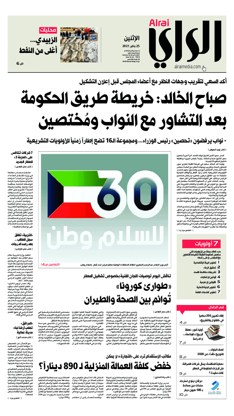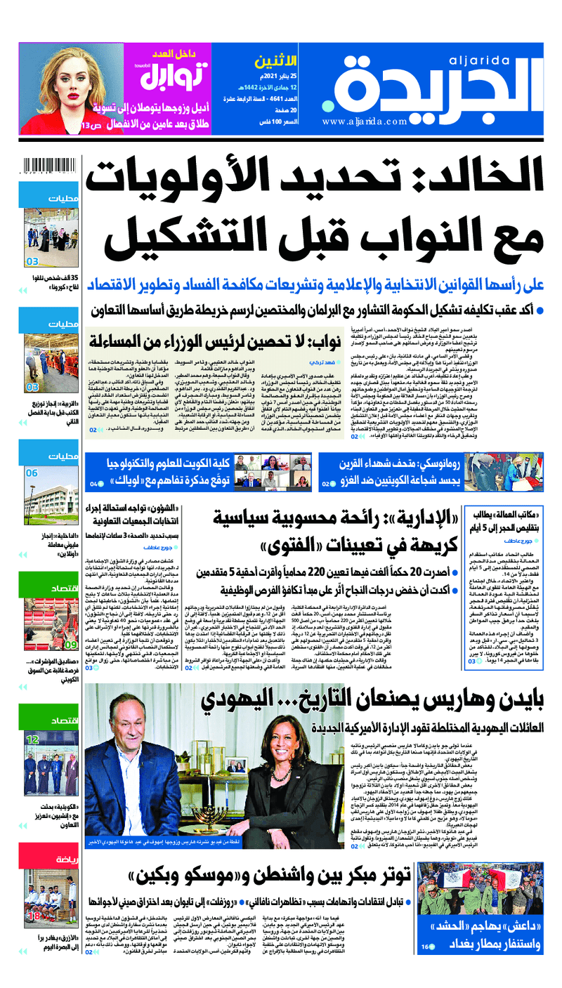 آخر الأخبار جرائم وقضايا “الجمارك” تضبط 29 ألف علبة مشروبات كحولية قادمة من دولة آسيوية في ميناء الشويخ 9 يونيو، 2024 محليات ممثلة عن دولة الكويت الطبيبة الكويتية أسماء الكندري تشارك في المؤتمر العالمي للمناظير في إيطاليا 8 يونيو، 2024 محليات “الصحة”: اكتمال وصول فريق الخدمات الطبية ببعثة الحج الكويتية لمكة المكرمة 8 يونيو، 2024 محليات “الصحة” تحدد 8 مراكز للصحة المدرسية لاستقبال الطلبة المبتعثين 8 يونيو، 2024 عربي وعالمي “الصحة العالمية”: تسجيل أول وفاة لشخص مصاب بـ«أنفلونزا الطيور» 7 يونيو، 2024 محليات عناوين الصحف الكويتية ليوم الاثنين 25 يناير 2021 محرر المحليات25 يناير، 2021أضف تعليق1 دقائق جريدة الجريدة جريدة الأنباء جريدة القبس جريدة الراي جريدة الوسط جريدة النهار الوسومTop عناوين الصحف المحلية من الممكن أن يعجبك جرائم وقضايا “الجمارك” تضبط 29 ألف علبة مشروبات كحولية قادمة من دولة آسيوية في ميناء الشويخ محليات ممثلة عن دولة الكويت الطبيبة الكويتية أسماء الكندري تشارك في المؤتمر العالمي للمناظير في إيطاليا محليات “الصحة”: اكتمال وصول فريق الخدمات الطبية ببعثة الحج الكويتية لمكة المكرمة محليات “الصحة” تحدد 8 مراكز للصحة المدرسية لاستقبال الطلبة المبتعثين عربي وعالمي “الصحة العالمية”: تسجيل أول وفاة لشخص مصاب بـ«أنفلونزا الطيور» تكنولوجيا رش السحب بملح البحر.. تجربة “ثورية” لتبريد كوكب الأرض أضف تعليق أضغط هنا لإضافة تعليق إلغاء الردالتعليقالاسم البريد الإلكتروني الموقع الإلكتروني Δ هذا الموقع يستخدم خدمة أكيسميت للتقليل من البريد المزعجة. اعرف المزيد عن كيفية التعامل مع بيانات التعليقات الخاصة بك processed.