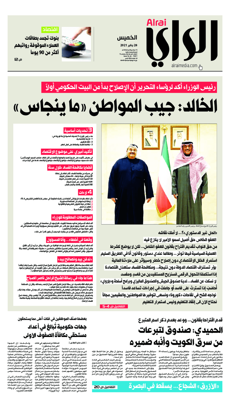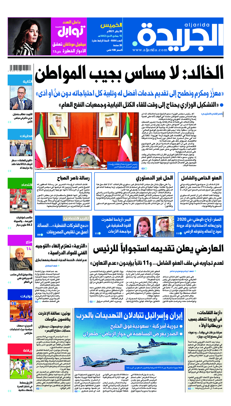 آخر الأخبار جرائم وقضايا “الجمارك” تضبط 29 ألف علبة مشروبات كحولية قادمة من دولة آسيوية في ميناء الشويخ 9 يونيو، 2024 محليات ممثلة عن دولة الكويت الطبيبة الكويتية أسماء الكندري تشارك في المؤتمر العالمي للمناظير في إيطاليا 8 يونيو، 2024 محليات “الصحة”: اكتمال وصول فريق الخدمات الطبية ببعثة الحج الكويتية لمكة المكرمة 8 يونيو، 2024 محليات “الصحة” تحدد 8 مراكز للصحة المدرسية لاستقبال الطلبة المبتعثين 8 يونيو، 2024 عربي وعالمي “الصحة العالمية”: تسجيل أول وفاة لشخص مصاب بـ«أنفلونزا الطيور» 7 يونيو، 2024 محليات عناوين الصحف الكويتية ليوم الخميس 28 يناير 2021 محرر المحليات28 يناير، 2021أضف تعليق1 دقائق جريدة الجريدة جريدة الأنباء جريدة القبس جريدة الراي جريدة الوسط جريدة النهار الوسومTop عناوين الصحف المحلية من الممكن أن يعجبك جرائم وقضايا “الجمارك” تضبط 29 ألف علبة مشروبات كحولية قادمة من دولة آسيوية في ميناء الشويخ محليات ممثلة عن دولة الكويت الطبيبة الكويتية أسماء الكندري تشارك في المؤتمر العالمي للمناظير في إيطاليا محليات “الصحة”: اكتمال وصول فريق الخدمات الطبية ببعثة الحج الكويتية لمكة المكرمة محليات “الصحة” تحدد 8 مراكز للصحة المدرسية لاستقبال الطلبة المبتعثين عربي وعالمي “الصحة العالمية”: تسجيل أول وفاة لشخص مصاب بـ«أنفلونزا الطيور» تكنولوجيا رش السحب بملح البحر.. تجربة “ثورية” لتبريد كوكب الأرض أضف تعليق أضغط هنا لإضافة تعليق إلغاء الردالتعليقالاسم البريد الإلكتروني الموقع الإلكتروني Δ هذا الموقع يستخدم خدمة أكيسميت للتقليل من البريد المزعجة. اعرف المزيد عن كيفية التعامل مع بيانات التعليقات الخاصة بك processed.