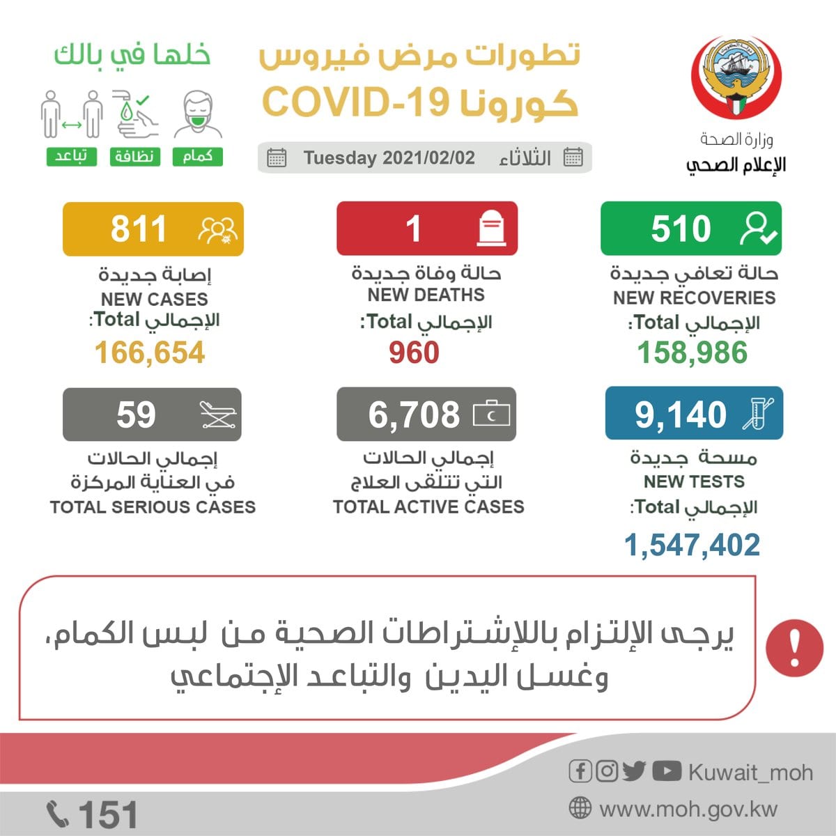 811 إصابة جديدة.. في تصاعد لم تشهده الكويت منذ 5 أشهر