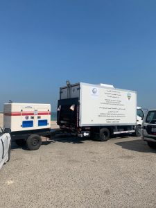 وكما استعان الفريق المشترك بين (الأشغال) و (البيئة) خلال جولته الميدانية بفريق من قبل قسم المختبرات والدراسات البيئية التابع لإدارة شئون البيئة في قطاع الهندسة الصحية بوزارة الأشغال العامة حيث تم إستخدام سيارة المختبر المتنقل لعمل الفحوصات المخبرية المطلوبة.
