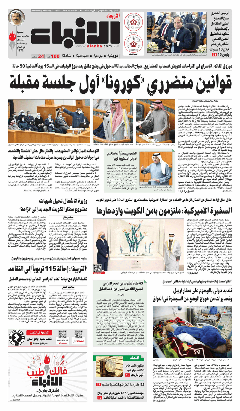 آخر الأخبار جرائم وقضايا “الجمارك” تضبط 29 ألف علبة مشروبات كحولية قادمة من دولة آسيوية في ميناء الشويخ 9 يونيو، 2024 محليات ممثلة عن دولة الكويت الطبيبة الكويتية أسماء الكندري تشارك في المؤتمر العالمي للمناظير في إيطاليا 8 يونيو، 2024 محليات “الصحة”: اكتمال وصول فريق الخدمات الطبية ببعثة الحج الكويتية لمكة المكرمة 8 يونيو، 2024 محليات “الصحة” تحدد 8 مراكز للصحة المدرسية لاستقبال الطلبة المبتعثين 8 يونيو، 2024 عربي وعالمي “الصحة العالمية”: تسجيل أول وفاة لشخص مصاب بـ«أنفلونزا الطيور» 7 يونيو، 2024 محليات عناوين الصحف الكويتية ليوم الأربعاء 17 فبراير 2021 محرر المحليات17 فبراير، 2021أضف تعليق1 دقائق جريدة الجريدة جريدة الأنباء جريدة القبس جريدة الراي جريدة الوسط جريدة النهار الوسومTop عناوين الصحف المحلية من الممكن أن يعجبك جرائم وقضايا “الجمارك” تضبط 29 ألف علبة مشروبات كحولية قادمة من دولة آسيوية في ميناء الشويخ محليات ممثلة عن دولة الكويت الطبيبة الكويتية أسماء الكندري تشارك في المؤتمر العالمي للمناظير في إيطاليا محليات “الصحة”: اكتمال وصول فريق الخدمات الطبية ببعثة الحج الكويتية لمكة المكرمة محليات “الصحة” تحدد 8 مراكز للصحة المدرسية لاستقبال الطلبة المبتعثين عربي وعالمي “الصحة العالمية”: تسجيل أول وفاة لشخص مصاب بـ«أنفلونزا الطيور» تكنولوجيا رش السحب بملح البحر.. تجربة “ثورية” لتبريد كوكب الأرض أضف تعليق أضغط هنا لإضافة تعليق إلغاء الردالتعليقالاسم البريد الإلكتروني الموقع الإلكتروني Δ هذا الموقع يستخدم خدمة أكيسميت للتقليل من البريد المزعجة. اعرف المزيد عن كيفية التعامل مع بيانات التعليقات الخاصة بك processed.