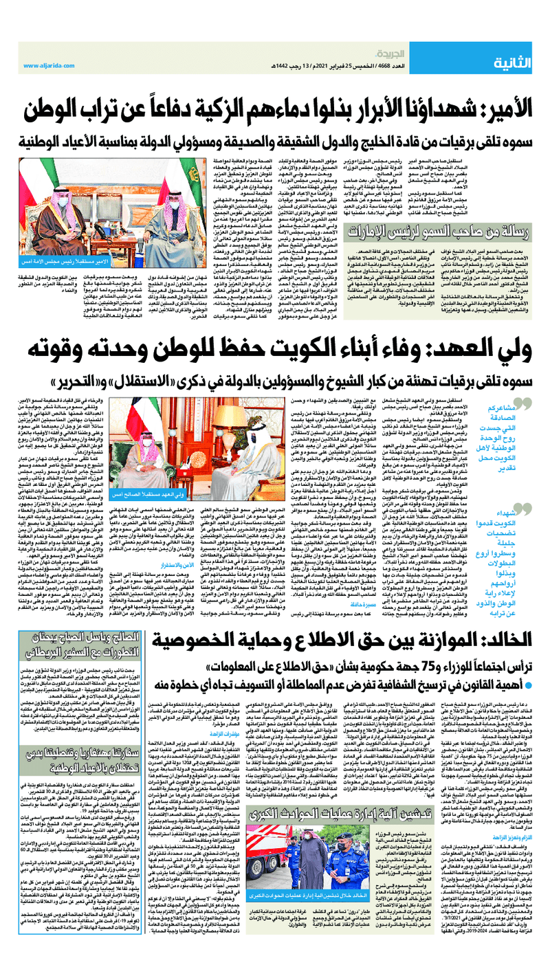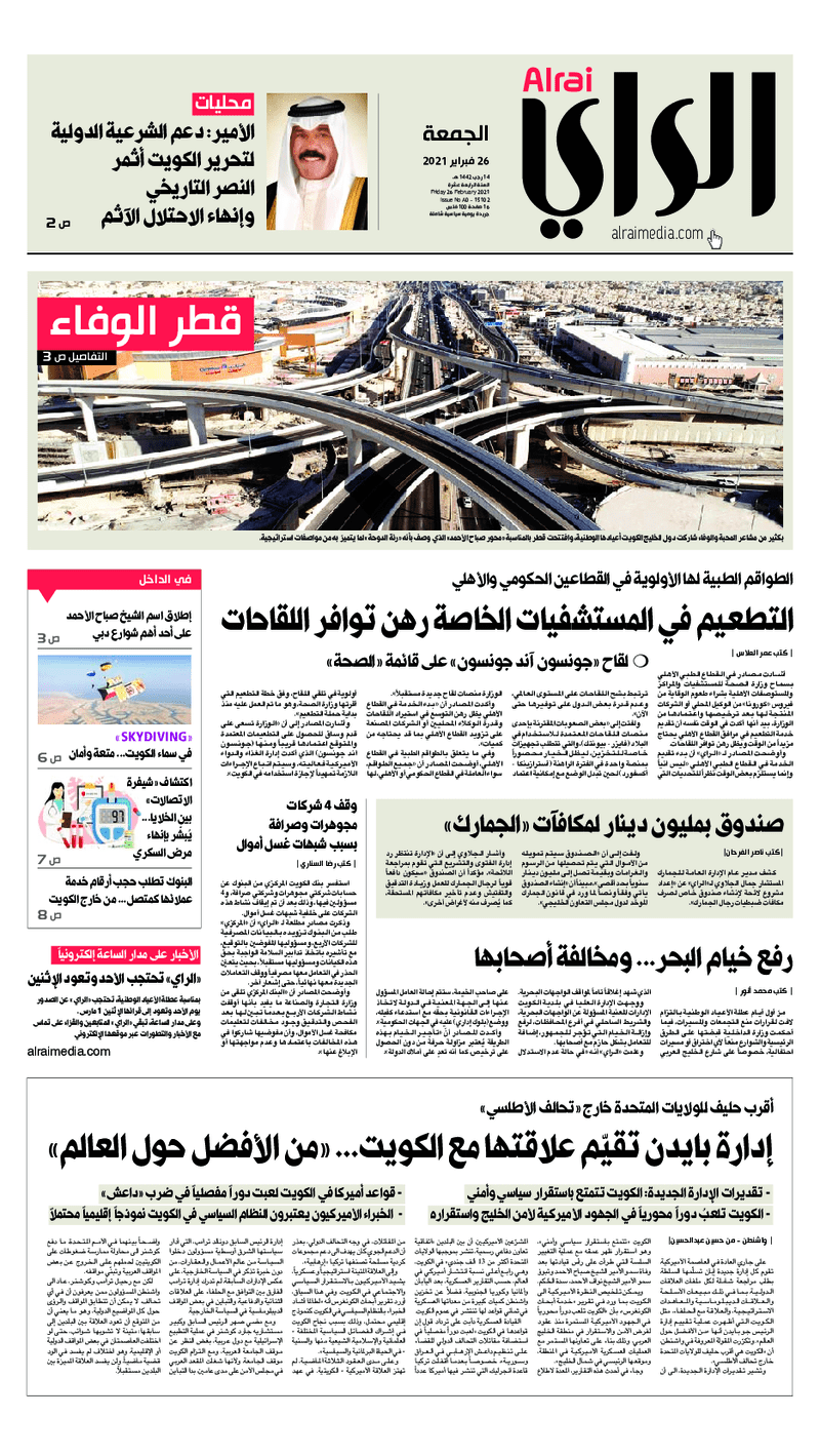 آخر الأخبار جرائم وقضايا “الجمارك” تضبط 29 ألف علبة مشروبات كحولية قادمة من دولة آسيوية في ميناء الشويخ 9 يونيو، 2024 محليات ممثلة عن دولة الكويت الطبيبة الكويتية أسماء الكندري تشارك في المؤتمر العالمي للمناظير في إيطاليا 8 يونيو، 2024 محليات “الصحة”: اكتمال وصول فريق الخدمات الطبية ببعثة الحج الكويتية لمكة المكرمة 8 يونيو، 2024 محليات “الصحة” تحدد 8 مراكز للصحة المدرسية لاستقبال الطلبة المبتعثين 8 يونيو، 2024 عربي وعالمي “الصحة العالمية”: تسجيل أول وفاة لشخص مصاب بـ«أنفلونزا الطيور» 7 يونيو، 2024 محليات عناوين الصحف الكويتية ليوم الجمعة 26 فبراير 2021 محرر المحليات26 فبراير، 2021أضف تعليق1 دقائق جريدة الجريدة جريدة الأنباء جريدة القبس جريدة الراي الوسومTop عناوين الصحف المحلية من الممكن أن يعجبك جرائم وقضايا “الجمارك” تضبط 29 ألف علبة مشروبات كحولية قادمة من دولة آسيوية في ميناء الشويخ محليات ممثلة عن دولة الكويت الطبيبة الكويتية أسماء الكندري تشارك في المؤتمر العالمي للمناظير في إيطاليا محليات “الصحة”: اكتمال وصول فريق الخدمات الطبية ببعثة الحج الكويتية لمكة المكرمة محليات “الصحة” تحدد 8 مراكز للصحة المدرسية لاستقبال الطلبة المبتعثين عربي وعالمي “الصحة العالمية”: تسجيل أول وفاة لشخص مصاب بـ«أنفلونزا الطيور» تكنولوجيا رش السحب بملح البحر.. تجربة “ثورية” لتبريد كوكب الأرض أضف تعليق أضغط هنا لإضافة تعليق إلغاء الردالتعليقالاسم البريد الإلكتروني الموقع الإلكتروني Δ هذا الموقع يستخدم خدمة أكيسميت للتقليل من البريد المزعجة. اعرف المزيد عن كيفية التعامل مع بيانات التعليقات الخاصة بك processed.
