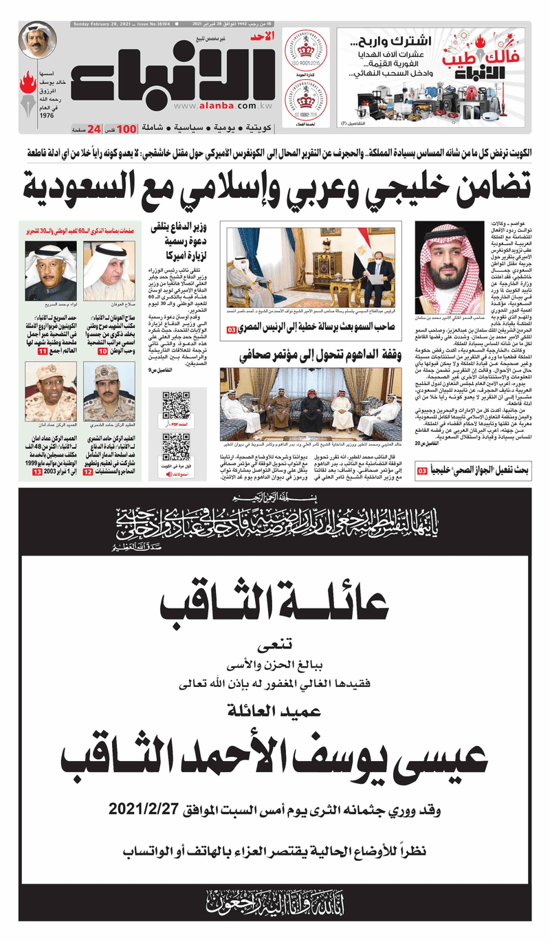 آخر الأخبار جرائم وقضايا “الجمارك” تضبط 29 ألف علبة مشروبات كحولية قادمة من دولة آسيوية في ميناء الشويخ 9 يونيو، 2024 محليات ممثلة عن دولة الكويت الطبيبة الكويتية أسماء الكندري تشارك في المؤتمر العالمي للمناظير في إيطاليا 8 يونيو، 2024 محليات “الصحة”: اكتمال وصول فريق الخدمات الطبية ببعثة الحج الكويتية لمكة المكرمة 8 يونيو، 2024 محليات “الصحة” تحدد 8 مراكز للصحة المدرسية لاستقبال الطلبة المبتعثين 8 يونيو، 2024 عربي وعالمي “الصحة العالمية”: تسجيل أول وفاة لشخص مصاب بـ«أنفلونزا الطيور» 7 يونيو، 2024 محليات عناوين الصحف الكويتية ليوم الأحد 28 فبراير 2021 محرر المحليات28 فبراير، 2021أضف تعليق1 دقائق جريدة الجريدة جريدة الأنباء جريدة القبس جريدة الوسط الوسومTop عناوين الصحف المحلية من الممكن أن يعجبك جرائم وقضايا “الجمارك” تضبط 29 ألف علبة مشروبات كحولية قادمة من دولة آسيوية في ميناء الشويخ محليات ممثلة عن دولة الكويت الطبيبة الكويتية أسماء الكندري تشارك في المؤتمر العالمي للمناظير في إيطاليا محليات “الصحة”: اكتمال وصول فريق الخدمات الطبية ببعثة الحج الكويتية لمكة المكرمة محليات “الصحة” تحدد 8 مراكز للصحة المدرسية لاستقبال الطلبة المبتعثين عربي وعالمي “الصحة العالمية”: تسجيل أول وفاة لشخص مصاب بـ«أنفلونزا الطيور» تكنولوجيا رش السحب بملح البحر.. تجربة “ثورية” لتبريد كوكب الأرض أضف تعليق أضغط هنا لإضافة تعليق إلغاء الردالتعليقالاسم البريد الإلكتروني الموقع الإلكتروني Δ هذا الموقع يستخدم خدمة أكيسميت للتقليل من البريد المزعجة. اعرف المزيد عن كيفية التعامل مع بيانات التعليقات الخاصة بك processed.