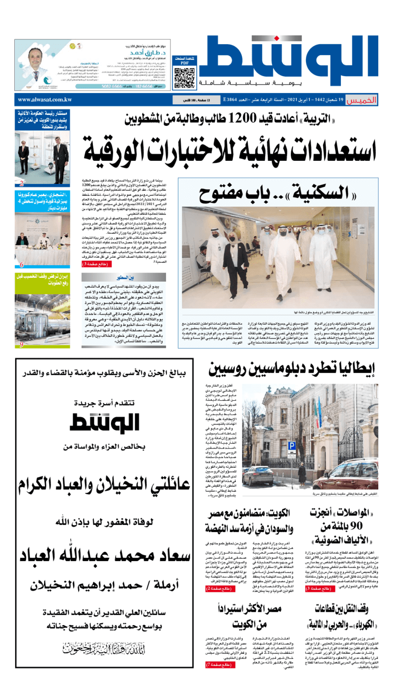 آخر الأخبار جرائم وقضايا “الجمارك” تضبط 29 ألف علبة مشروبات كحولية قادمة من دولة آسيوية في ميناء الشويخ 9 يونيو، 2024 محليات ممثلة عن دولة الكويت الطبيبة الكويتية أسماء الكندري تشارك في المؤتمر العالمي للمناظير في إيطاليا 8 يونيو، 2024 محليات “الصحة”: اكتمال وصول فريق الخدمات الطبية ببعثة الحج الكويتية لمكة المكرمة 8 يونيو، 2024 محليات “الصحة” تحدد 8 مراكز للصحة المدرسية لاستقبال الطلبة المبتعثين 8 يونيو، 2024 عربي وعالمي “الصحة العالمية”: تسجيل أول وفاة لشخص مصاب بـ«أنفلونزا الطيور» 7 يونيو، 2024 محليات عناوين الصحف الكويتية ليوم الخميس 01 أبريل 2021 محرر المحليات1 أبريل، 2021أضف تعليق1 دقائق جريدة الجريدة جريدة الأنباء جريدة الراي جريدة الوسط الوسومTop عناوين الصحف المحلية من الممكن أن يعجبك جرائم وقضايا “الجمارك” تضبط 29 ألف علبة مشروبات كحولية قادمة من دولة آسيوية في ميناء الشويخ محليات ممثلة عن دولة الكويت الطبيبة الكويتية أسماء الكندري تشارك في المؤتمر العالمي للمناظير في إيطاليا محليات “الصحة”: اكتمال وصول فريق الخدمات الطبية ببعثة الحج الكويتية لمكة المكرمة محليات “الصحة” تحدد 8 مراكز للصحة المدرسية لاستقبال الطلبة المبتعثين عربي وعالمي “الصحة العالمية”: تسجيل أول وفاة لشخص مصاب بـ«أنفلونزا الطيور» تكنولوجيا رش السحب بملح البحر.. تجربة “ثورية” لتبريد كوكب الأرض أضف تعليق أضغط هنا لإضافة تعليق إلغاء الردالتعليقالاسم البريد الإلكتروني الموقع الإلكتروني Δ هذا الموقع يستخدم خدمة أكيسميت للتقليل من البريد المزعجة. اعرف المزيد عن كيفية التعامل مع بيانات التعليقات الخاصة بك processed.