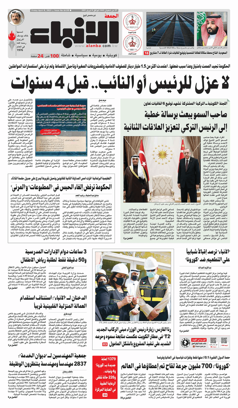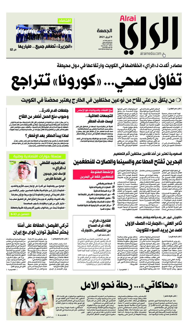 آخر الأخبار جرائم وقضايا “الجمارك” تضبط 29 ألف علبة مشروبات كحولية قادمة من دولة آسيوية في ميناء الشويخ 9 يونيو، 2024 محليات ممثلة عن دولة الكويت الطبيبة الكويتية أسماء الكندري تشارك في المؤتمر العالمي للمناظير في إيطاليا 8 يونيو، 2024 محليات “الصحة”: اكتمال وصول فريق الخدمات الطبية ببعثة الحج الكويتية لمكة المكرمة 8 يونيو، 2024 محليات “الصحة” تحدد 8 مراكز للصحة المدرسية لاستقبال الطلبة المبتعثين 8 يونيو، 2024 عربي وعالمي “الصحة العالمية”: تسجيل أول وفاة لشخص مصاب بـ«أنفلونزا الطيور» 7 يونيو، 2024 محليات عناوين الصحف الكويتية ليوم الجمعة 09 أبريل 2021 محرر المحليات9 أبريل، 2021أضف تعليق1 دقائق جريدة الجريدة جريدة الأنباء جريدة الراي الوسومTop عناوين الصحف المحلية من الممكن أن يعجبك جرائم وقضايا “الجمارك” تضبط 29 ألف علبة مشروبات كحولية قادمة من دولة آسيوية في ميناء الشويخ محليات ممثلة عن دولة الكويت الطبيبة الكويتية أسماء الكندري تشارك في المؤتمر العالمي للمناظير في إيطاليا محليات “الصحة”: اكتمال وصول فريق الخدمات الطبية ببعثة الحج الكويتية لمكة المكرمة محليات “الصحة” تحدد 8 مراكز للصحة المدرسية لاستقبال الطلبة المبتعثين عربي وعالمي “الصحة العالمية”: تسجيل أول وفاة لشخص مصاب بـ«أنفلونزا الطيور» تكنولوجيا رش السحب بملح البحر.. تجربة “ثورية” لتبريد كوكب الأرض أضف تعليق أضغط هنا لإضافة تعليق إلغاء الردالتعليقالاسم البريد الإلكتروني الموقع الإلكتروني Δ هذا الموقع يستخدم خدمة أكيسميت للتقليل من البريد المزعجة. اعرف المزيد عن كيفية التعامل مع بيانات التعليقات الخاصة بك processed.