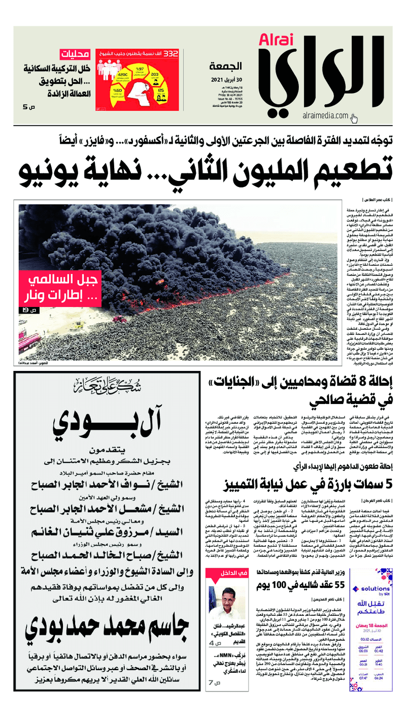 آخر الأخبار جرائم وقضايا “الجمارك” تضبط 29 ألف علبة مشروبات كحولية قادمة من دولة آسيوية في ميناء الشويخ 9 يونيو، 2024 محليات ممثلة عن دولة الكويت الطبيبة الكويتية أسماء الكندري تشارك في المؤتمر العالمي للمناظير في إيطاليا 8 يونيو، 2024 محليات “الصحة”: اكتمال وصول فريق الخدمات الطبية ببعثة الحج الكويتية لمكة المكرمة 8 يونيو، 2024 محليات “الصحة” تحدد 8 مراكز للصحة المدرسية لاستقبال الطلبة المبتعثين 8 يونيو، 2024 عربي وعالمي “الصحة العالمية”: تسجيل أول وفاة لشخص مصاب بـ«أنفلونزا الطيور» 7 يونيو، 2024 محليات عناوين الصحف الكويتية ليوم الجمعة 30 أبريل 2021 محرر المحليات30 أبريل، 2021أضف تعليق1 دقائق جريدة الجريدة جريدة الراي الوسومTop عناوين الصحف المحلية من الممكن أن يعجبك جرائم وقضايا “الجمارك” تضبط 29 ألف علبة مشروبات كحولية قادمة من دولة آسيوية في ميناء الشويخ محليات ممثلة عن دولة الكويت الطبيبة الكويتية أسماء الكندري تشارك في المؤتمر العالمي للمناظير في إيطاليا محليات “الصحة”: اكتمال وصول فريق الخدمات الطبية ببعثة الحج الكويتية لمكة المكرمة محليات “الصحة” تحدد 8 مراكز للصحة المدرسية لاستقبال الطلبة المبتعثين عربي وعالمي “الصحة العالمية”: تسجيل أول وفاة لشخص مصاب بـ«أنفلونزا الطيور» تكنولوجيا رش السحب بملح البحر.. تجربة “ثورية” لتبريد كوكب الأرض أضف تعليق أضغط هنا لإضافة تعليق إلغاء الردالتعليقالاسم البريد الإلكتروني الموقع الإلكتروني Δ هذا الموقع يستخدم خدمة أكيسميت للتقليل من البريد المزعجة. اعرف المزيد عن كيفية التعامل مع بيانات التعليقات الخاصة بك processed.