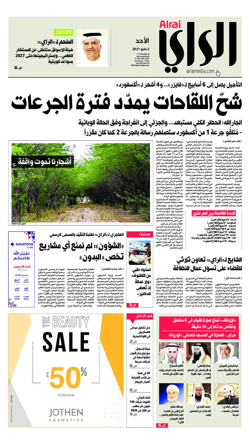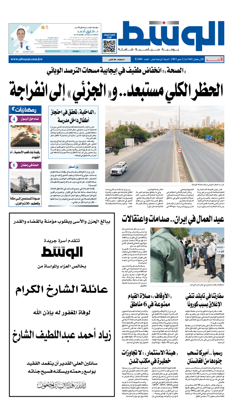 آخر الأخبار جرائم وقضايا “الجمارك” تضبط 29 ألف علبة مشروبات كحولية قادمة من دولة آسيوية في ميناء الشويخ 9 يونيو، 2024 محليات ممثلة عن دولة الكويت الطبيبة الكويتية أسماء الكندري تشارك في المؤتمر العالمي للمناظير في إيطاليا 8 يونيو، 2024 محليات “الصحة”: اكتمال وصول فريق الخدمات الطبية ببعثة الحج الكويتية لمكة المكرمة 8 يونيو، 2024 محليات “الصحة” تحدد 8 مراكز للصحة المدرسية لاستقبال الطلبة المبتعثين 8 يونيو، 2024 عربي وعالمي “الصحة العالمية”: تسجيل أول وفاة لشخص مصاب بـ«أنفلونزا الطيور» 7 يونيو، 2024 محليات عناوين الصحف الكويتية ليوم الأحد 02 مايو 2021 محرر المحليات2 مايو، 2021أضف تعليق1 دقائق جريدة الجريدة جريدة الأنباء جريدة الراي جريدة الوسط الوسومTop عناوين الصحف المحلية من الممكن أن يعجبك جرائم وقضايا “الجمارك” تضبط 29 ألف علبة مشروبات كحولية قادمة من دولة آسيوية في ميناء الشويخ محليات ممثلة عن دولة الكويت الطبيبة الكويتية أسماء الكندري تشارك في المؤتمر العالمي للمناظير في إيطاليا محليات “الصحة”: اكتمال وصول فريق الخدمات الطبية ببعثة الحج الكويتية لمكة المكرمة محليات “الصحة” تحدد 8 مراكز للصحة المدرسية لاستقبال الطلبة المبتعثين عربي وعالمي “الصحة العالمية”: تسجيل أول وفاة لشخص مصاب بـ«أنفلونزا الطيور» تكنولوجيا رش السحب بملح البحر.. تجربة “ثورية” لتبريد كوكب الأرض أضف تعليق أضغط هنا لإضافة تعليق إلغاء الردالتعليقالاسم البريد الإلكتروني الموقع الإلكتروني Δ هذا الموقع يستخدم خدمة أكيسميت للتقليل من البريد المزعجة. اعرف المزيد عن كيفية التعامل مع بيانات التعليقات الخاصة بك processed.
