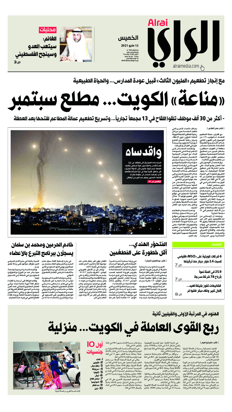 عناوين الصحف الكويتية ليوم الخميس 13 مايو 2021