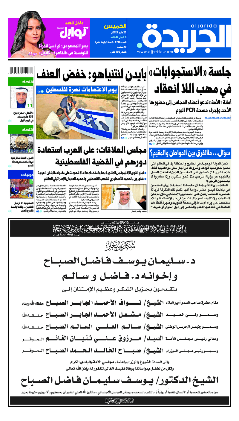 آخر الأخبار جرائم وقضايا “الجمارك” تضبط 29 ألف علبة مشروبات كحولية قادمة من دولة آسيوية في ميناء الشويخ 9 يونيو، 2024 محليات ممثلة عن دولة الكويت الطبيبة الكويتية أسماء الكندري تشارك في المؤتمر العالمي للمناظير في إيطاليا 8 يونيو، 2024 محليات “الصحة”: اكتمال وصول فريق الخدمات الطبية ببعثة الحج الكويتية لمكة المكرمة 8 يونيو، 2024 محليات “الصحة” تحدد 8 مراكز للصحة المدرسية لاستقبال الطلبة المبتعثين 8 يونيو، 2024 عربي وعالمي “الصحة العالمية”: تسجيل أول وفاة لشخص مصاب بـ«أنفلونزا الطيور» 7 يونيو، 2024 محليات عناوين الصحف الكويتية ليوم الخميس 20 مايو 2021 محرر المحليات20 مايو، 2021أضف تعليق1 دقائق جريدة الجريدة جريدة الأنباء جريدة الراي جريدة الوسط الوسومTop عناوين الصحف المحلية من الممكن أن يعجبك جرائم وقضايا “الجمارك” تضبط 29 ألف علبة مشروبات كحولية قادمة من دولة آسيوية في ميناء الشويخ محليات ممثلة عن دولة الكويت الطبيبة الكويتية أسماء الكندري تشارك في المؤتمر العالمي للمناظير في إيطاليا محليات “الصحة”: اكتمال وصول فريق الخدمات الطبية ببعثة الحج الكويتية لمكة المكرمة محليات “الصحة” تحدد 8 مراكز للصحة المدرسية لاستقبال الطلبة المبتعثين عربي وعالمي “الصحة العالمية”: تسجيل أول وفاة لشخص مصاب بـ«أنفلونزا الطيور» تكنولوجيا رش السحب بملح البحر.. تجربة “ثورية” لتبريد كوكب الأرض أضف تعليق أضغط هنا لإضافة تعليق إلغاء الردالتعليقالاسم البريد الإلكتروني الموقع الإلكتروني Δ هذا الموقع يستخدم خدمة أكيسميت للتقليل من البريد المزعجة. اعرف المزيد عن كيفية التعامل مع بيانات التعليقات الخاصة بك processed.