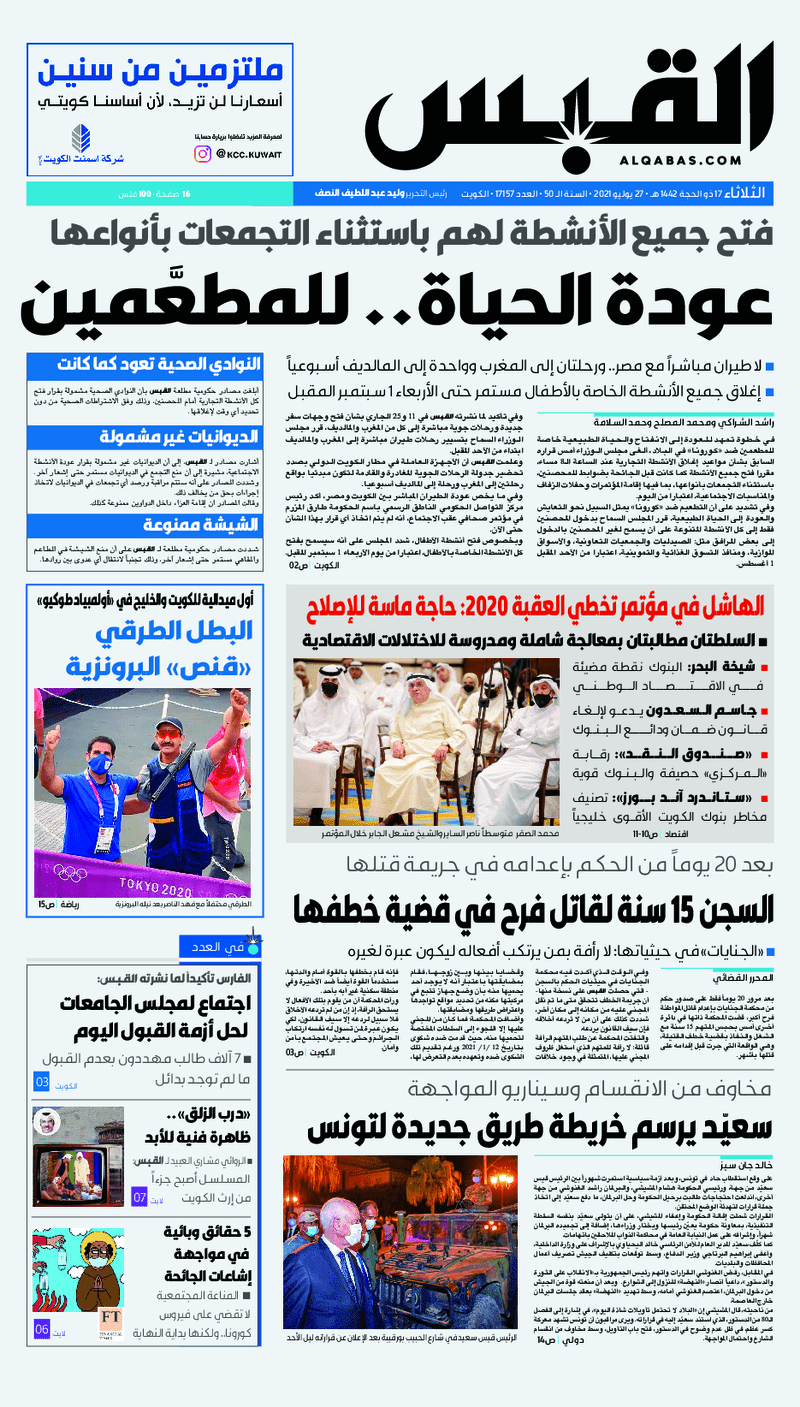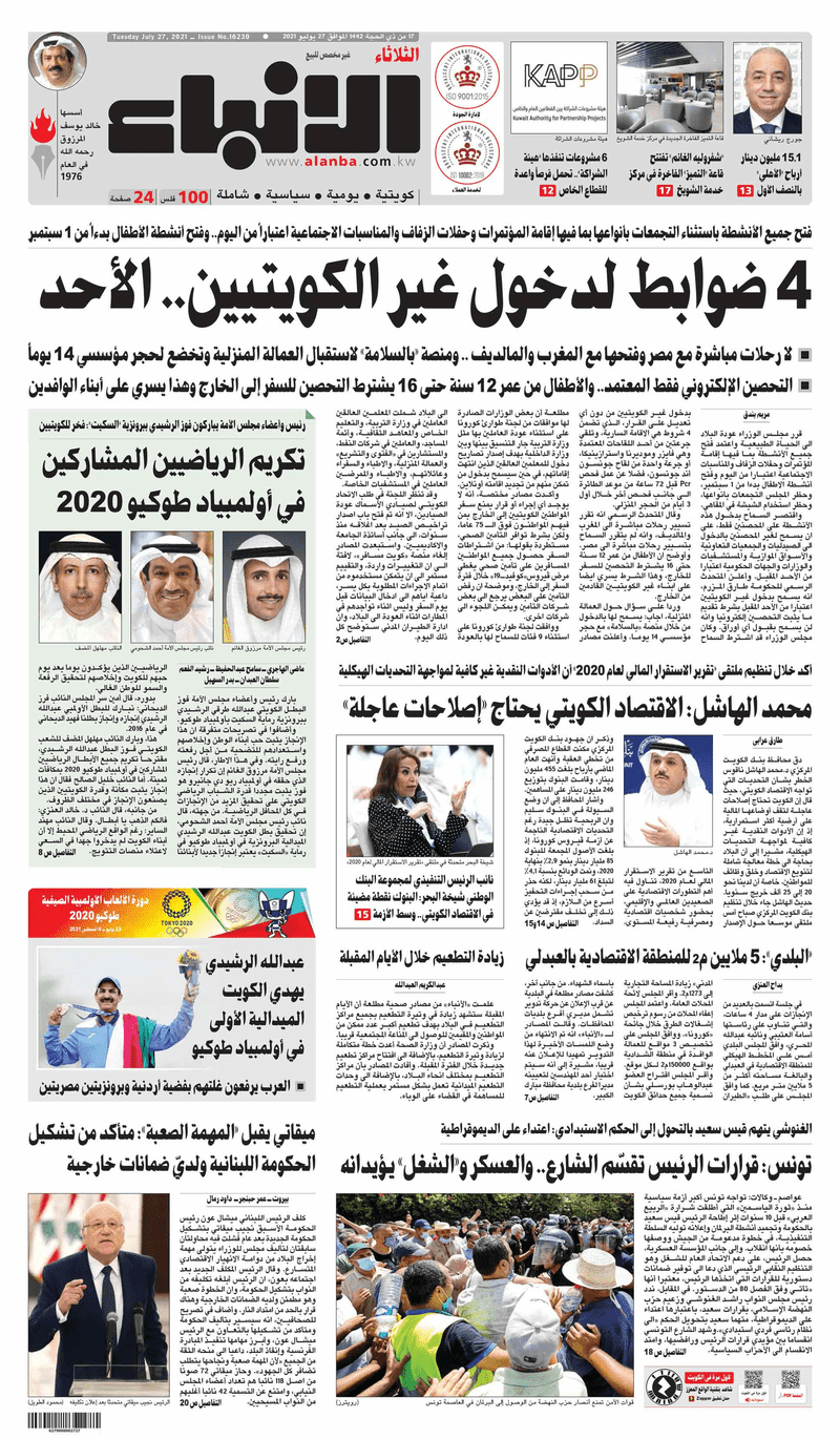 آخر الأخبار جرائم وقضايا “الجمارك” تضبط 29 ألف علبة مشروبات كحولية قادمة من دولة آسيوية في ميناء الشويخ 9 يونيو، 2024 محليات ممثلة عن دولة الكويت الطبيبة الكويتية أسماء الكندري تشارك في المؤتمر العالمي للمناظير في إيطاليا 8 يونيو، 2024 محليات “الصحة”: اكتمال وصول فريق الخدمات الطبية ببعثة الحج الكويتية لمكة المكرمة 8 يونيو، 2024 محليات “الصحة” تحدد 8 مراكز للصحة المدرسية لاستقبال الطلبة المبتعثين 8 يونيو، 2024 عربي وعالمي “الصحة العالمية”: تسجيل أول وفاة لشخص مصاب بـ«أنفلونزا الطيور» 7 يونيو، 2024 محليات عناوين الصحف الكويتية ليوم الثلاثاء 27 يوليو 2021 محرر المحليات27 يوليو، 2021أضف تعليق1 دقائق جريدة الجريدة جريدة الأنباء جريدة القبس جريدة الراي جريدة الوسط الوسومTop عناوين الصحف المحلية من الممكن أن يعجبك جرائم وقضايا “الجمارك” تضبط 29 ألف علبة مشروبات كحولية قادمة من دولة آسيوية في ميناء الشويخ محليات ممثلة عن دولة الكويت الطبيبة الكويتية أسماء الكندري تشارك في المؤتمر العالمي للمناظير في إيطاليا محليات “الصحة”: اكتمال وصول فريق الخدمات الطبية ببعثة الحج الكويتية لمكة المكرمة محليات “الصحة” تحدد 8 مراكز للصحة المدرسية لاستقبال الطلبة المبتعثين عربي وعالمي “الصحة العالمية”: تسجيل أول وفاة لشخص مصاب بـ«أنفلونزا الطيور» تكنولوجيا رش السحب بملح البحر.. تجربة “ثورية” لتبريد كوكب الأرض أضف تعليق أضغط هنا لإضافة تعليق إلغاء الردالتعليقالاسم البريد الإلكتروني الموقع الإلكتروني Δ هذا الموقع يستخدم خدمة أكيسميت للتقليل من البريد المزعجة. اعرف المزيد عن كيفية التعامل مع بيانات التعليقات الخاصة بك processed.