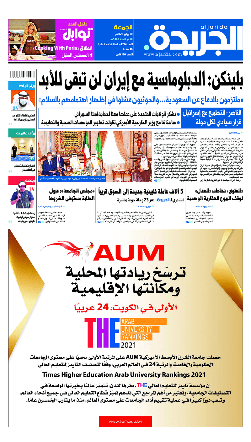 آخر الأخبار جرائم وقضايا “الجمارك” تضبط 29 ألف علبة مشروبات كحولية قادمة من دولة آسيوية في ميناء الشويخ 9 يونيو، 2024 محليات ممثلة عن دولة الكويت الطبيبة الكويتية أسماء الكندري تشارك في المؤتمر العالمي للمناظير في إيطاليا 8 يونيو، 2024 محليات “الصحة”: اكتمال وصول فريق الخدمات الطبية ببعثة الحج الكويتية لمكة المكرمة 8 يونيو، 2024 محليات “الصحة” تحدد 8 مراكز للصحة المدرسية لاستقبال الطلبة المبتعثين 8 يونيو، 2024 عربي وعالمي “الصحة العالمية”: تسجيل أول وفاة لشخص مصاب بـ«أنفلونزا الطيور» 7 يونيو، 2024 محليات عناوين الصحف الكويتية ليوم الجمعة 30 يوليو 2021 محرر المحليات30 يوليو، 2021أضف تعليق1 دقائق جريدة الجريدة جريدة الأنباء جريدة القبس جريدة الراي الوسومTop عناوين الصحف المحلية من الممكن أن يعجبك جرائم وقضايا “الجمارك” تضبط 29 ألف علبة مشروبات كحولية قادمة من دولة آسيوية في ميناء الشويخ محليات ممثلة عن دولة الكويت الطبيبة الكويتية أسماء الكندري تشارك في المؤتمر العالمي للمناظير في إيطاليا محليات “الصحة”: اكتمال وصول فريق الخدمات الطبية ببعثة الحج الكويتية لمكة المكرمة محليات “الصحة” تحدد 8 مراكز للصحة المدرسية لاستقبال الطلبة المبتعثين عربي وعالمي “الصحة العالمية”: تسجيل أول وفاة لشخص مصاب بـ«أنفلونزا الطيور» تكنولوجيا رش السحب بملح البحر.. تجربة “ثورية” لتبريد كوكب الأرض أضف تعليق أضغط هنا لإضافة تعليق إلغاء الردالتعليقالاسم البريد الإلكتروني الموقع الإلكتروني Δ هذا الموقع يستخدم خدمة أكيسميت للتقليل من البريد المزعجة. اعرف المزيد عن كيفية التعامل مع بيانات التعليقات الخاصة بك processed.