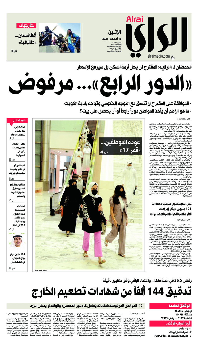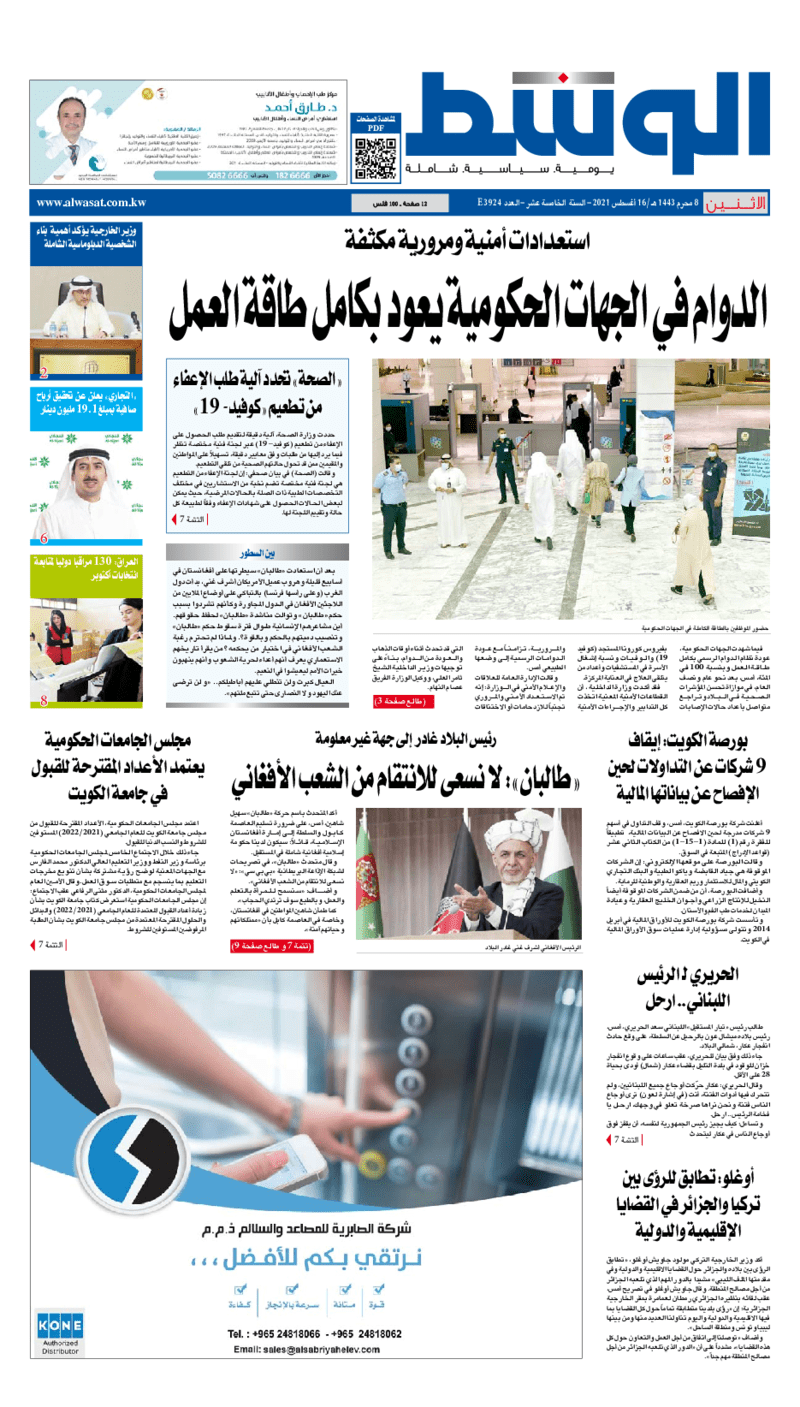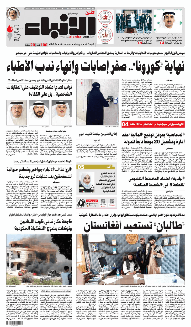 آخر الأخبار جرائم وقضايا “الجمارك” تضبط 29 ألف علبة مشروبات كحولية قادمة من دولة آسيوية في ميناء الشويخ 9 يونيو، 2024 محليات ممثلة عن دولة الكويت الطبيبة الكويتية أسماء الكندري تشارك في المؤتمر العالمي للمناظير في إيطاليا 8 يونيو، 2024 محليات “الصحة”: اكتمال وصول فريق الخدمات الطبية ببعثة الحج الكويتية لمكة المكرمة 8 يونيو، 2024 محليات “الصحة” تحدد 8 مراكز للصحة المدرسية لاستقبال الطلبة المبتعثين 8 يونيو، 2024 عربي وعالمي “الصحة العالمية”: تسجيل أول وفاة لشخص مصاب بـ«أنفلونزا الطيور» 7 يونيو، 2024 محليات عناوين الصحف الكويتية ليوم الاثنين 16 أغسطس 2021 محرر المحليات16 أغسطس، 2021أضف تعليق1 دقائق جريدة الجريدة جريدة الأنباء جريدة القبس جريدة الراي جريدة الوسط الوسومTop عناوين الصحف المحلية من الممكن أن يعجبك جرائم وقضايا “الجمارك” تضبط 29 ألف علبة مشروبات كحولية قادمة من دولة آسيوية في ميناء الشويخ محليات ممثلة عن دولة الكويت الطبيبة الكويتية أسماء الكندري تشارك في المؤتمر العالمي للمناظير في إيطاليا محليات “الصحة”: اكتمال وصول فريق الخدمات الطبية ببعثة الحج الكويتية لمكة المكرمة محليات “الصحة” تحدد 8 مراكز للصحة المدرسية لاستقبال الطلبة المبتعثين عربي وعالمي “الصحة العالمية”: تسجيل أول وفاة لشخص مصاب بـ«أنفلونزا الطيور» تكنولوجيا رش السحب بملح البحر.. تجربة “ثورية” لتبريد كوكب الأرض أضف تعليق أضغط هنا لإضافة تعليق إلغاء الردالتعليقالاسم البريد الإلكتروني الموقع الإلكتروني Δ هذا الموقع يستخدم خدمة أكيسميت للتقليل من البريد المزعجة. اعرف المزيد عن كيفية التعامل مع بيانات التعليقات الخاصة بك processed.