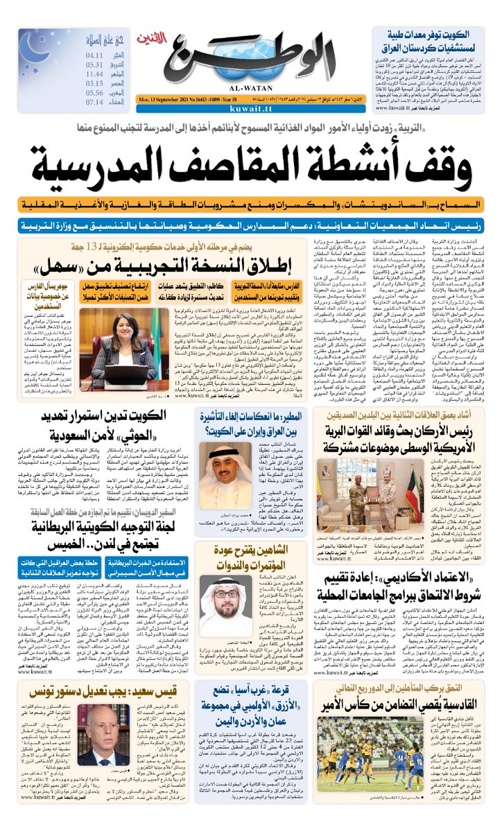 عناوين الصحف الكويتية ليوم الاثنين 13 سبتمبر 2021