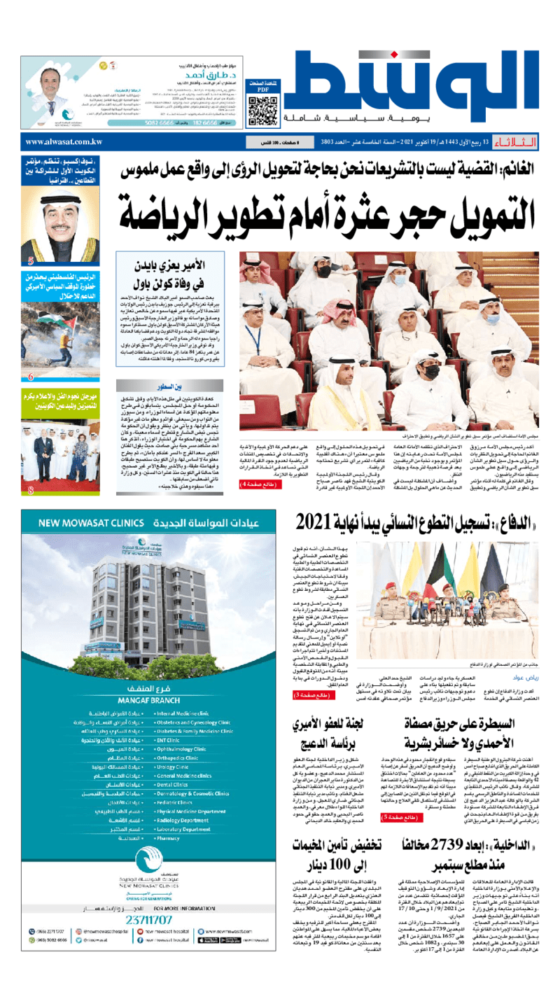 عناوين الصحف الكويتية ليوم الثلاثاء 19 أكتوبر 2021