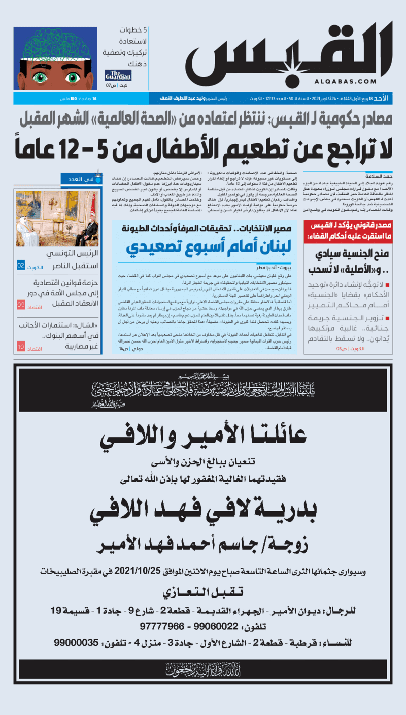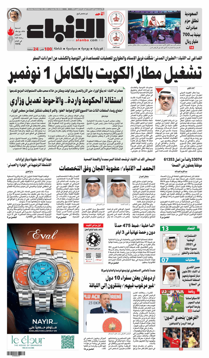عناوين الصحف الكويتية ليوم الأحد 24 أكتوبر 2021