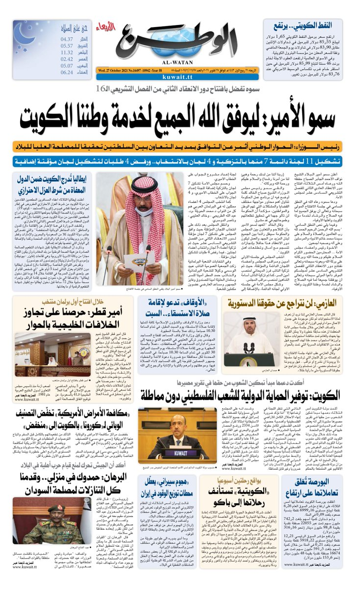 عناوين الصحف الكويتية ليوم الأربعاء 27 أكتوبر 2021