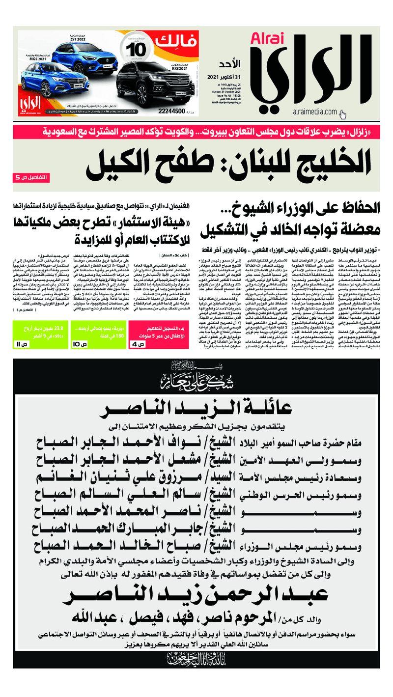 عناوين الصحف الكويتية ليوم الأحد 31 أكتوبر 2021
