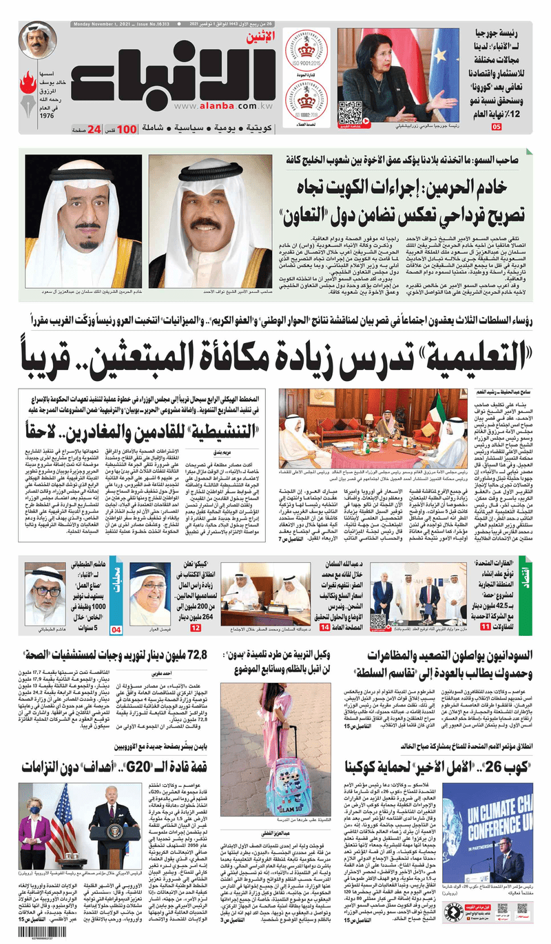 عناوين الصحف الكويتية ليوم الاثنين 01 نوفمبر 2021