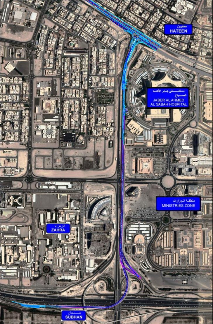 افتتحت الهيئة العامة للطرق والنقل البري اليوم الثلاثاء بالتنسيق مع الإدارة العامة للمرور جسرا جديدا على طريق جاسم الخرافي (الدائري السادس) تجاه المسيلة ضمن (مشروع تطوير جنوب السرة).