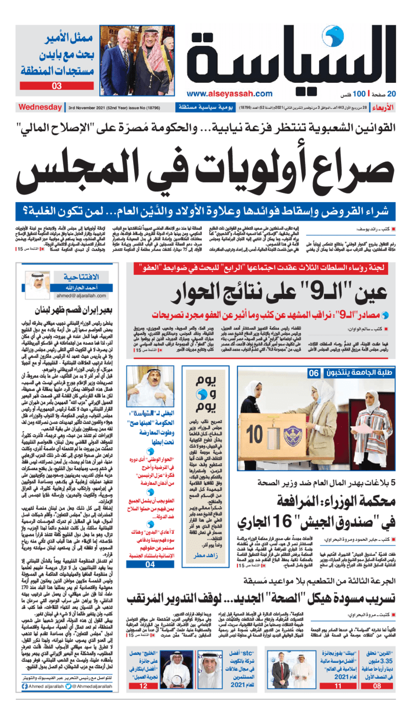 عناوين الصحف الكويتية ليوم الأربعاء 03 نوفمبر 2021