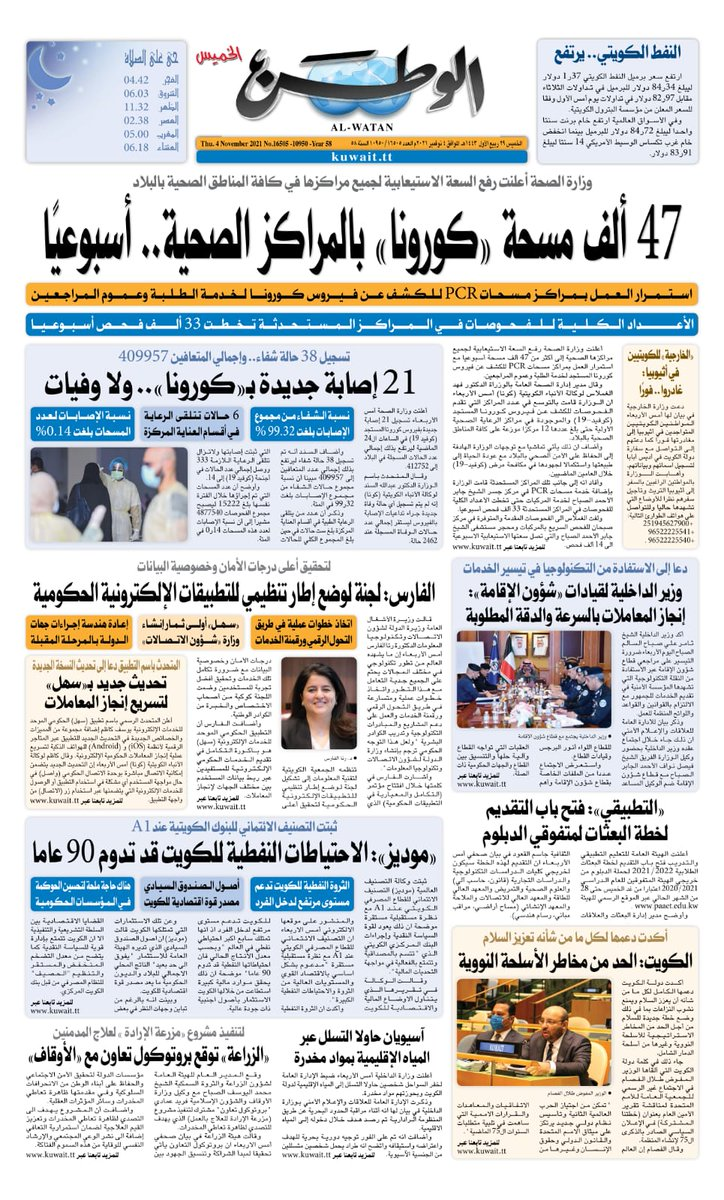 عناوين الصحف الكويتية ليوم الخميس 04 نوفمبر 2021