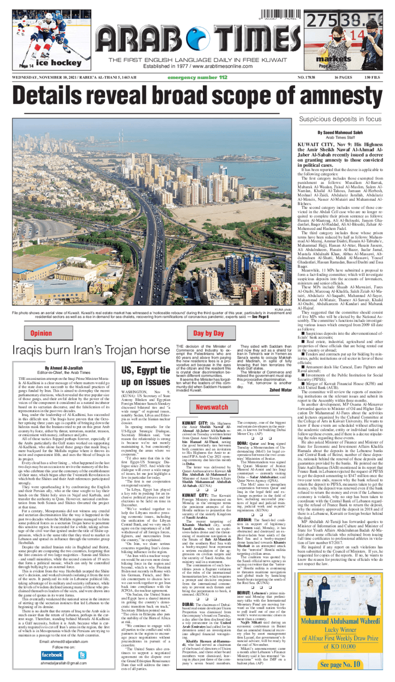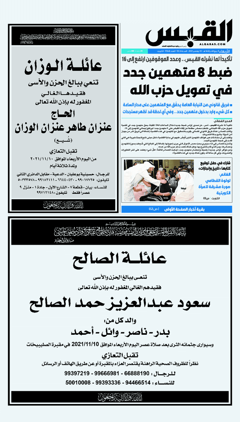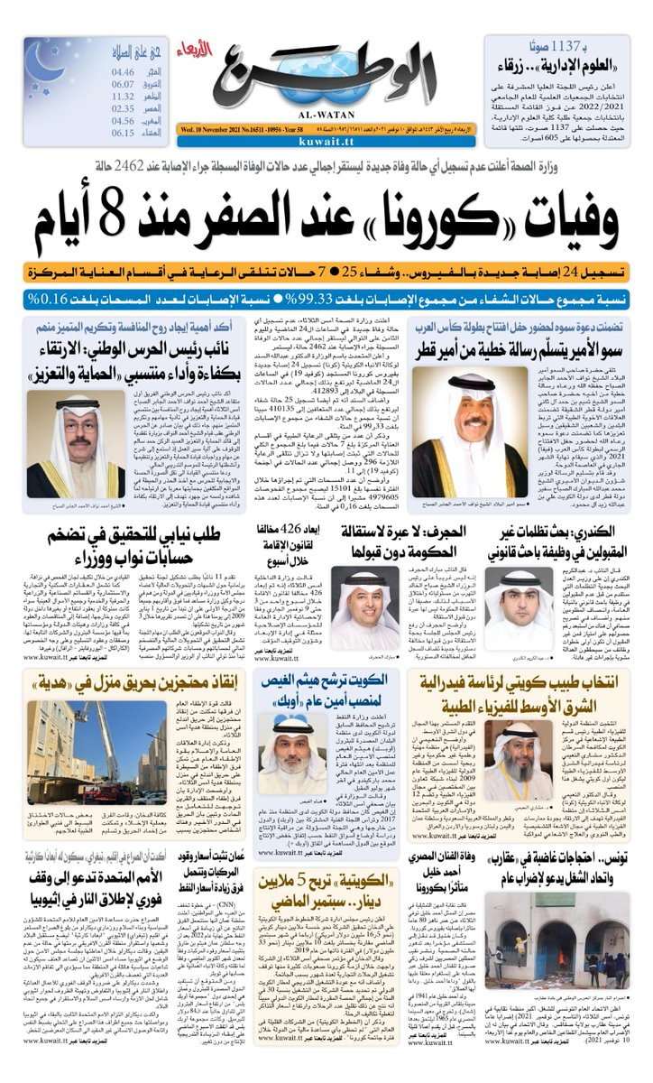 عناوين الصحف الكويتية ليوم الأربعاء 10 نوفمبر 2021