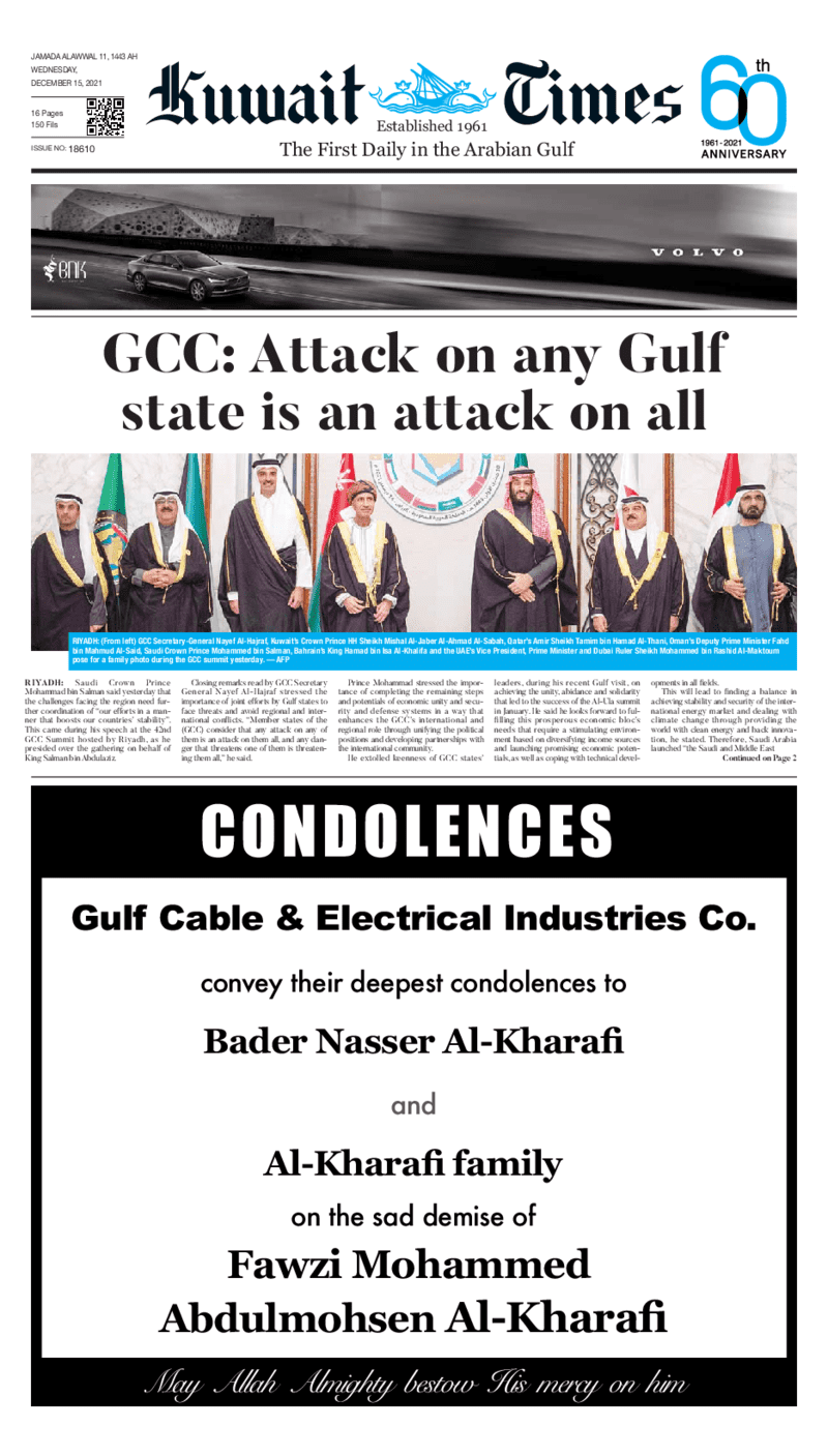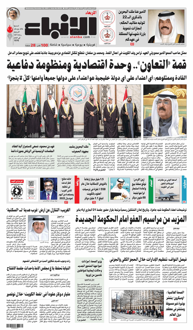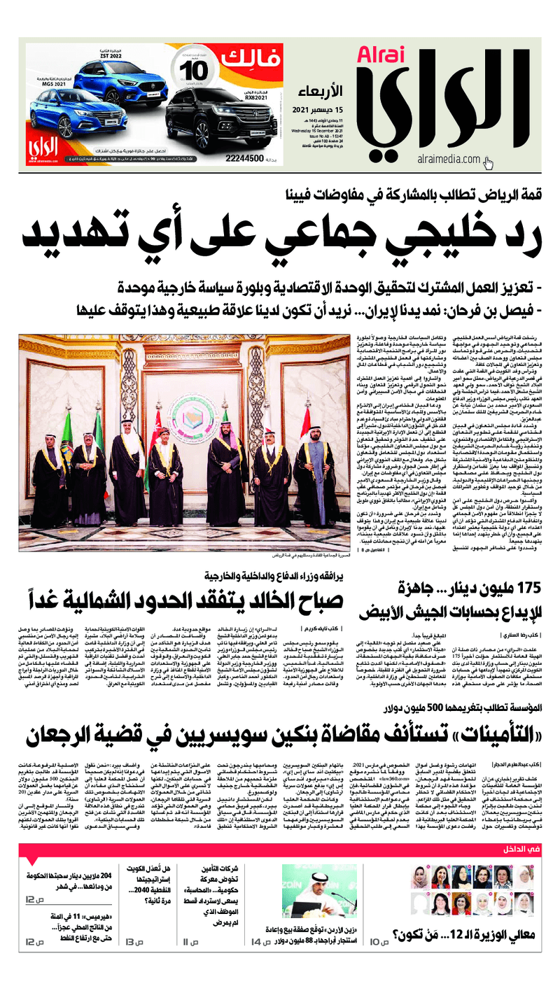 عناوين الصحف الكويتية ليوم الأربعاء 15 ديسمبر 2021