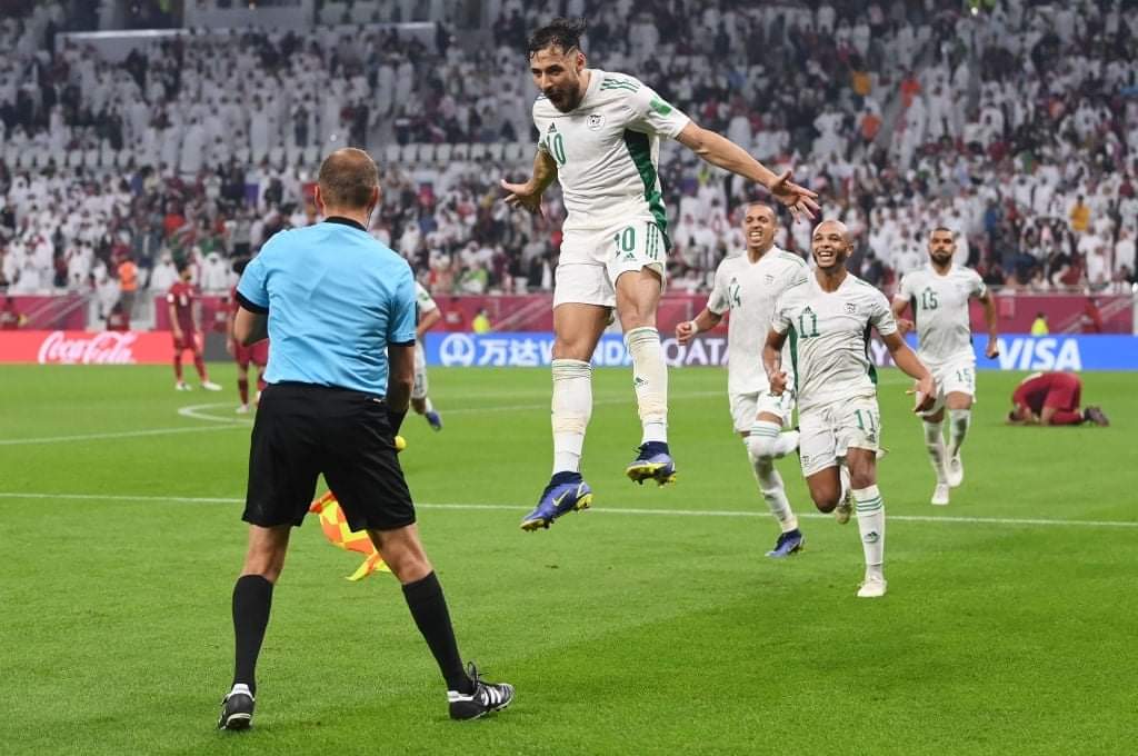 تأهل المنتخب الجزائري إلى نهائي كأس العرب 2021 ، وذلك بعد فوزه على نظيره القطري بنتيجة (2/1) ، في المباراة التي أقيمت بينهما مساء اليوم باستاد الثمامة في الدور قبل النهائي للبطولة.