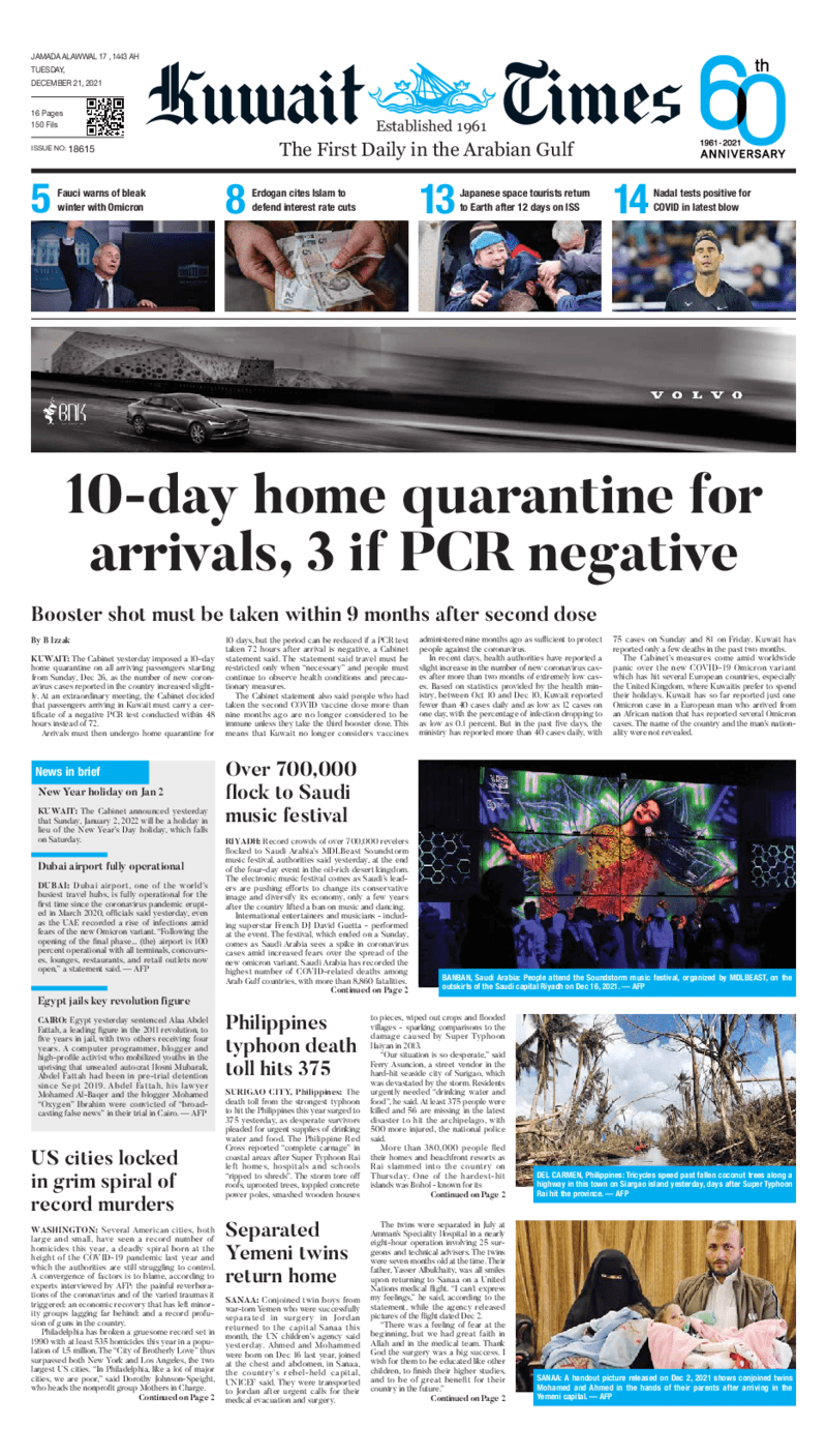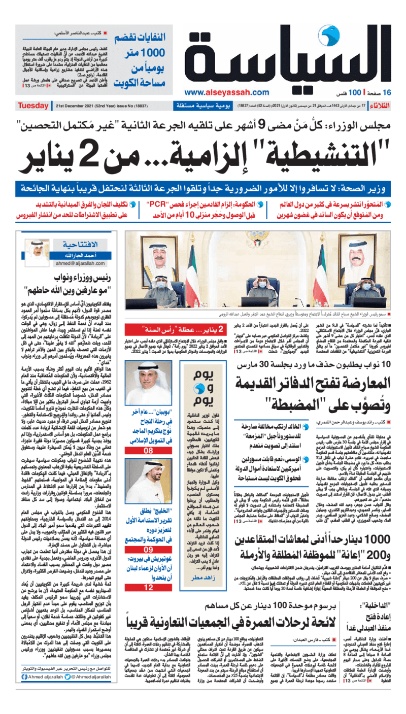 عناوين الصحف الكويتية ليوم الثلاثاء 21 ديسمبر 2021