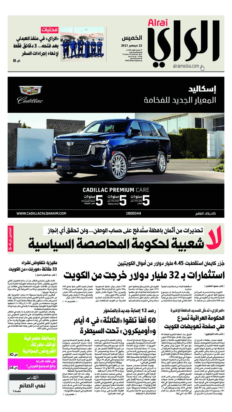 عناوين الصحف الكويتية ليوم الخميس 23 ديسمبر 2021