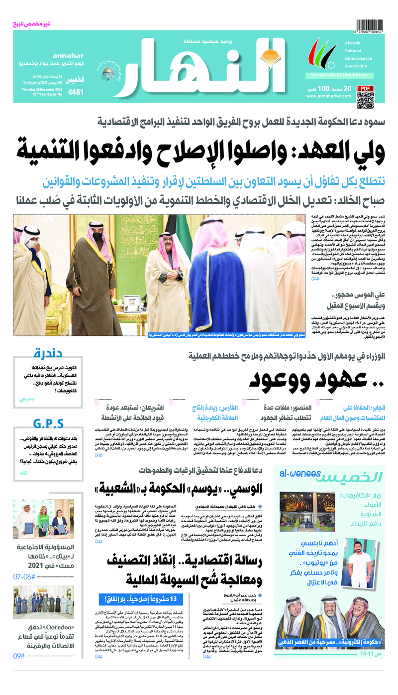 عناوين الصحف الكويتية ليوم الخميس 30 ديسمبر 2021