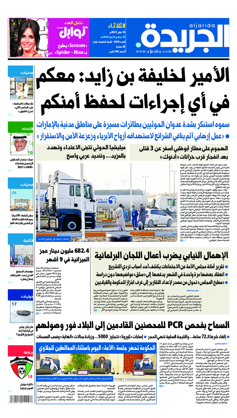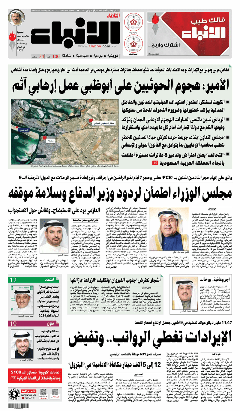 عناوين الصحف الكويتية ليوم الثلاثاء 18 يناير 2022