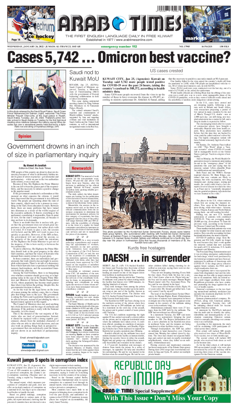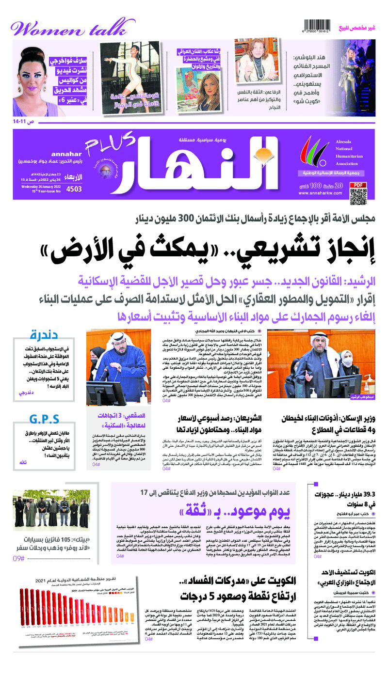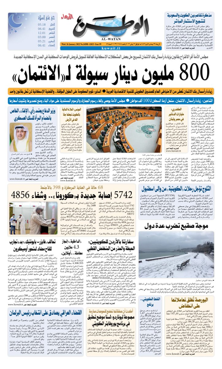 عناوين الصحف الكويتية ليوم الأربعاء 26 يناير 2022