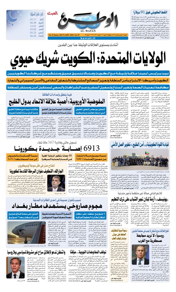 آخر الأخبار جرائم وقضايا “الجمارك” تضبط 29 ألف علبة مشروبات كحولية قادمة من دولة آسيوية في ميناء الشويخ 9 يونيو، 2024 محليات ممثلة عن دولة الكويت الطبيبة الكويتية أسماء الكندري تشارك في المؤتمر العالمي للمناظير في إيطاليا 8 يونيو، 2024 محليات “الصحة”: اكتمال وصول فريق الخدمات الطبية ببعثة الحج الكويتية لمكة المكرمة 8 يونيو، 2024 محليات “الصحة” تحدد 8 مراكز للصحة المدرسية لاستقبال الطلبة المبتعثين 8 يونيو، 2024 عربي وعالمي “الصحة العالمية”: تسجيل أول وفاة لشخص مصاب بـ«أنفلونزا الطيور» 7 يونيو، 2024 محليات عناوين الصحف الكويتية ليوم السبت 29 يناير 2022 محرر المحليات29 يناير، 2022أضف تعليق1 دقائق جريدة الوطن الوسومTop عناوين الصحف المحلية من الممكن أن يعجبك جرائم وقضايا “الجمارك” تضبط 29 ألف علبة مشروبات كحولية قادمة من دولة آسيوية في ميناء الشويخ محليات ممثلة عن دولة الكويت الطبيبة الكويتية أسماء الكندري تشارك في المؤتمر العالمي للمناظير في إيطاليا محليات “الصحة”: اكتمال وصول فريق الخدمات الطبية ببعثة الحج الكويتية لمكة المكرمة محليات “الصحة” تحدد 8 مراكز للصحة المدرسية لاستقبال الطلبة المبتعثين عربي وعالمي “الصحة العالمية”: تسجيل أول وفاة لشخص مصاب بـ«أنفلونزا الطيور» تكنولوجيا رش السحب بملح البحر.. تجربة “ثورية” لتبريد كوكب الأرض أضف تعليق أضغط هنا لإضافة تعليق إلغاء الردالتعليقالاسم البريد الإلكتروني الموقع الإلكتروني Δ هذا الموقع يستخدم خدمة أكيسميت للتقليل من البريد المزعجة. اعرف المزيد عن كيفية التعامل مع بيانات التعليقات الخاصة بك processed.