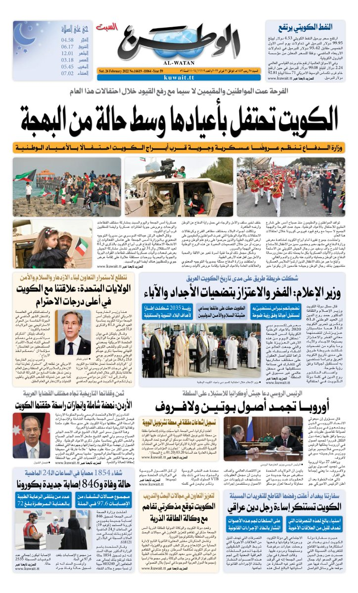 آخر الأخبار جرائم وقضايا “الجمارك” تضبط 29 ألف علبة مشروبات كحولية قادمة من دولة آسيوية في ميناء الشويخ 9 يونيو، 2024 محليات ممثلة عن دولة الكويت الطبيبة الكويتية أسماء الكندري تشارك في المؤتمر العالمي للمناظير في إيطاليا 8 يونيو، 2024 محليات “الصحة”: اكتمال وصول فريق الخدمات الطبية ببعثة الحج الكويتية لمكة المكرمة 8 يونيو، 2024 محليات “الصحة” تحدد 8 مراكز للصحة المدرسية لاستقبال الطلبة المبتعثين 8 يونيو، 2024 عربي وعالمي “الصحة العالمية”: تسجيل أول وفاة لشخص مصاب بـ«أنفلونزا الطيور» 7 يونيو، 2024 محليات عناوين الصحف الكويتية ليوم السبت 26 فبراير 2022 محرر المحليات26 فبراير، 2022أضف تعليق1 دقائق جريدة الوطن الوسومTop عناوين الصحف المحلية من الممكن أن يعجبك جرائم وقضايا “الجمارك” تضبط 29 ألف علبة مشروبات كحولية قادمة من دولة آسيوية في ميناء الشويخ محليات ممثلة عن دولة الكويت الطبيبة الكويتية أسماء الكندري تشارك في المؤتمر العالمي للمناظير في إيطاليا محليات “الصحة”: اكتمال وصول فريق الخدمات الطبية ببعثة الحج الكويتية لمكة المكرمة محليات “الصحة” تحدد 8 مراكز للصحة المدرسية لاستقبال الطلبة المبتعثين عربي وعالمي “الصحة العالمية”: تسجيل أول وفاة لشخص مصاب بـ«أنفلونزا الطيور» تكنولوجيا رش السحب بملح البحر.. تجربة “ثورية” لتبريد كوكب الأرض أضف تعليق أضغط هنا لإضافة تعليق إلغاء الردالتعليقالاسم البريد الإلكتروني الموقع الإلكتروني Δ هذا الموقع يستخدم خدمة أكيسميت للتقليل من البريد المزعجة. اعرف المزيد عن كيفية التعامل مع بيانات التعليقات الخاصة بك processed.