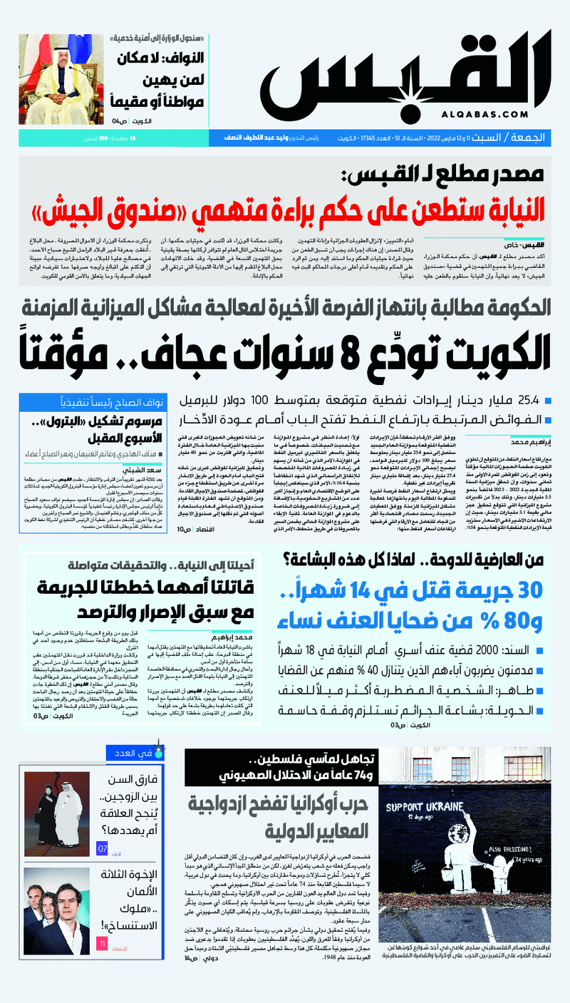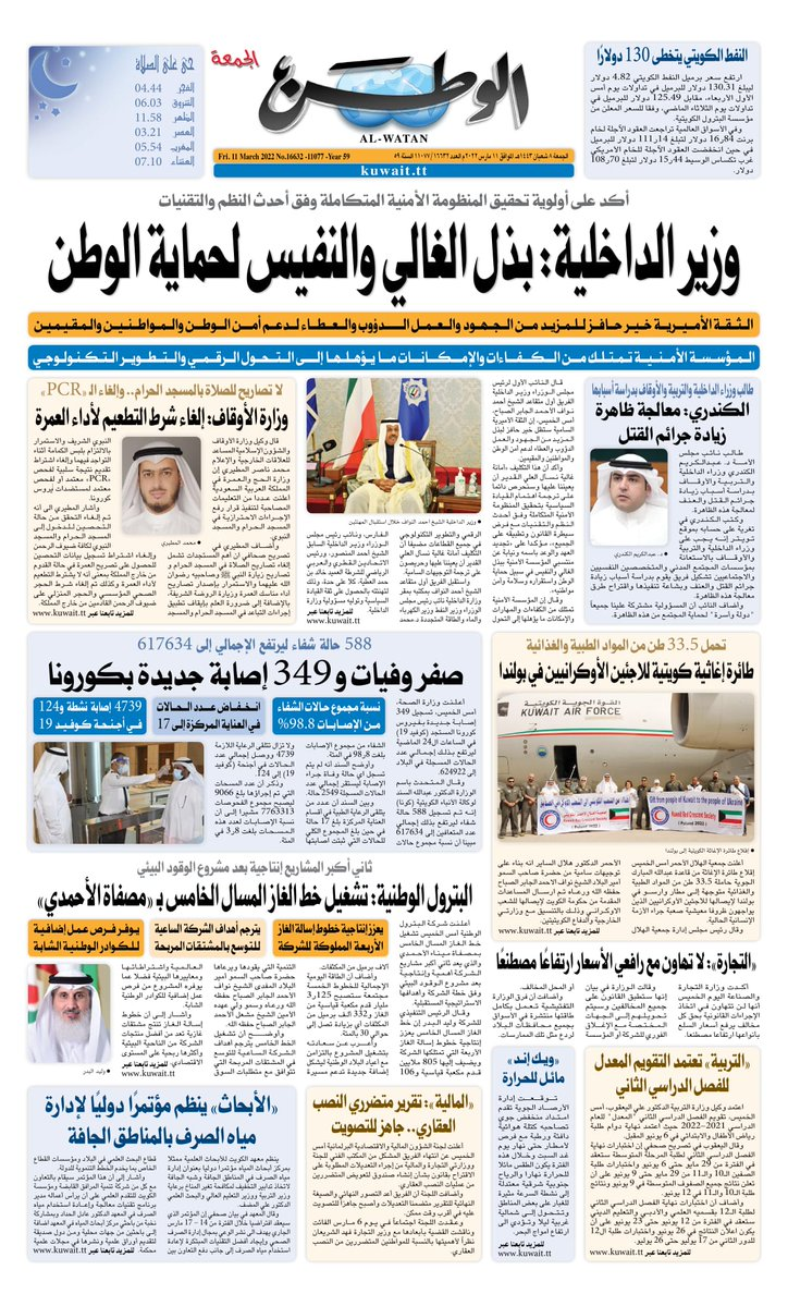 آخر الأخبار جرائم وقضايا “الجمارك” تضبط 29 ألف علبة مشروبات كحولية قادمة من دولة آسيوية في ميناء الشويخ 9 يونيو، 2024 محليات ممثلة عن دولة الكويت الطبيبة الكويتية أسماء الكندري تشارك في المؤتمر العالمي للمناظير في إيطاليا 8 يونيو، 2024 محليات “الصحة”: اكتمال وصول فريق الخدمات الطبية ببعثة الحج الكويتية لمكة المكرمة 8 يونيو، 2024 محليات “الصحة” تحدد 8 مراكز للصحة المدرسية لاستقبال الطلبة المبتعثين 8 يونيو، 2024 عربي وعالمي “الصحة العالمية”: تسجيل أول وفاة لشخص مصاب بـ«أنفلونزا الطيور» 7 يونيو، 2024 محليات عناوين الصحف الكويتية ليوم الجمعة 11 مارس 2022 محرر المحليات11 مارس، 2022أضف تعليق1 دقائق جريدة الجريدة جريدة الأنباء جريدة القبس جريدة السياسة جريدة الوطن جريدة الصباح جريدة عرب تايمز الوسومTop عناوين الصحف المحلية من الممكن أن يعجبك جرائم وقضايا “الجمارك” تضبط 29 ألف علبة مشروبات كحولية قادمة من دولة آسيوية في ميناء الشويخ محليات ممثلة عن دولة الكويت الطبيبة الكويتية أسماء الكندري تشارك في المؤتمر العالمي للمناظير في إيطاليا محليات “الصحة”: اكتمال وصول فريق الخدمات الطبية ببعثة الحج الكويتية لمكة المكرمة محليات “الصحة” تحدد 8 مراكز للصحة المدرسية لاستقبال الطلبة المبتعثين عربي وعالمي “الصحة العالمية”: تسجيل أول وفاة لشخص مصاب بـ«أنفلونزا الطيور» تكنولوجيا رش السحب بملح البحر.. تجربة “ثورية” لتبريد كوكب الأرض أضف تعليق أضغط هنا لإضافة تعليق إلغاء الردالتعليقالاسم البريد الإلكتروني الموقع الإلكتروني Δ هذا الموقع يستخدم خدمة أكيسميت للتقليل من البريد المزعجة. اعرف المزيد عن كيفية التعامل مع بيانات التعليقات الخاصة بك processed.