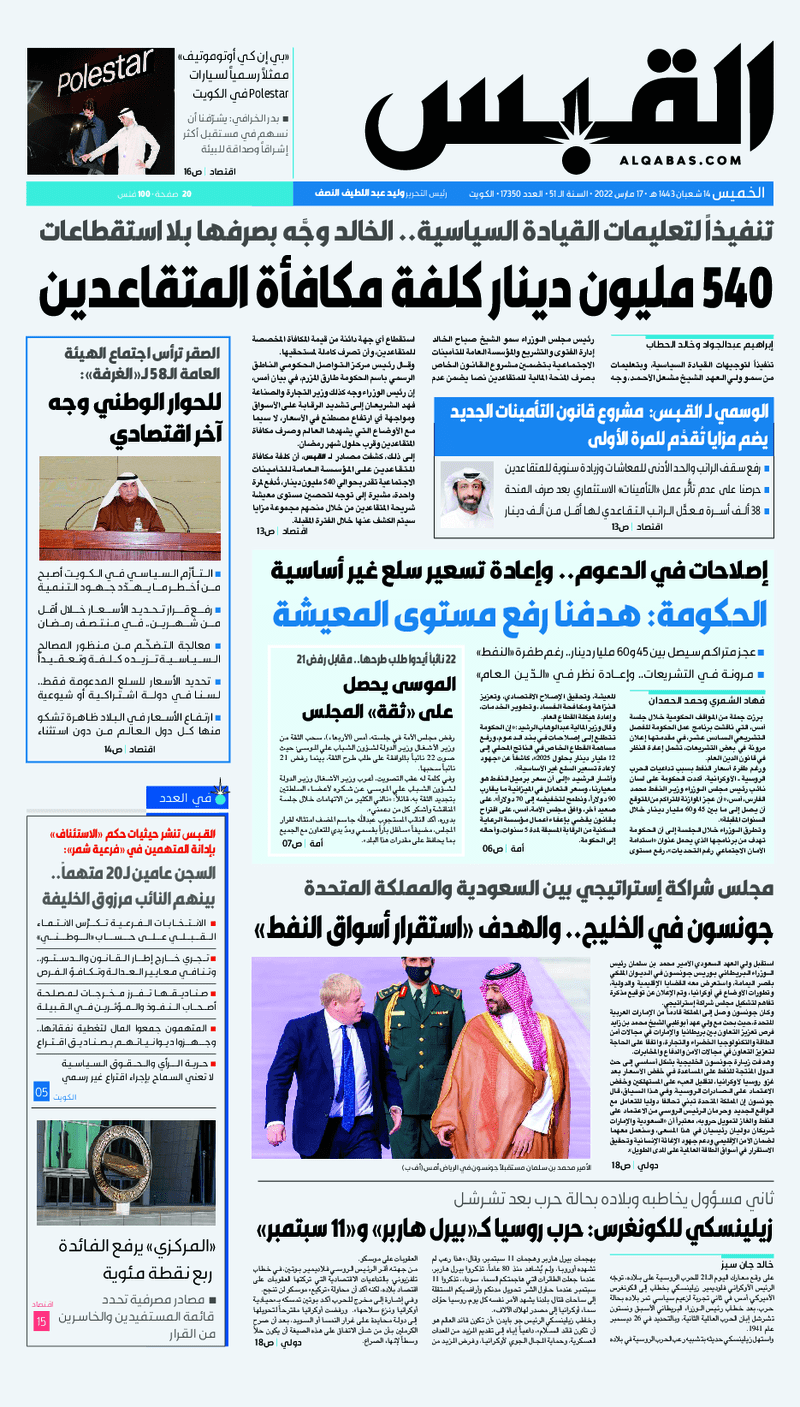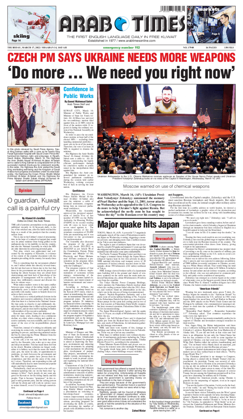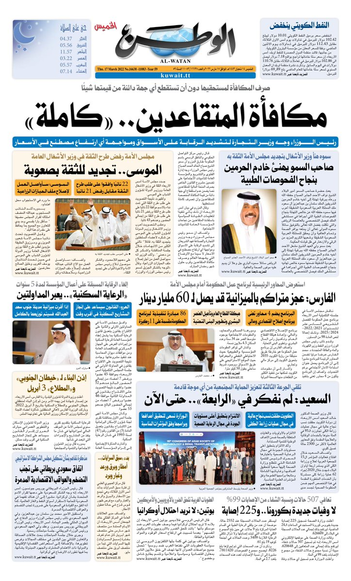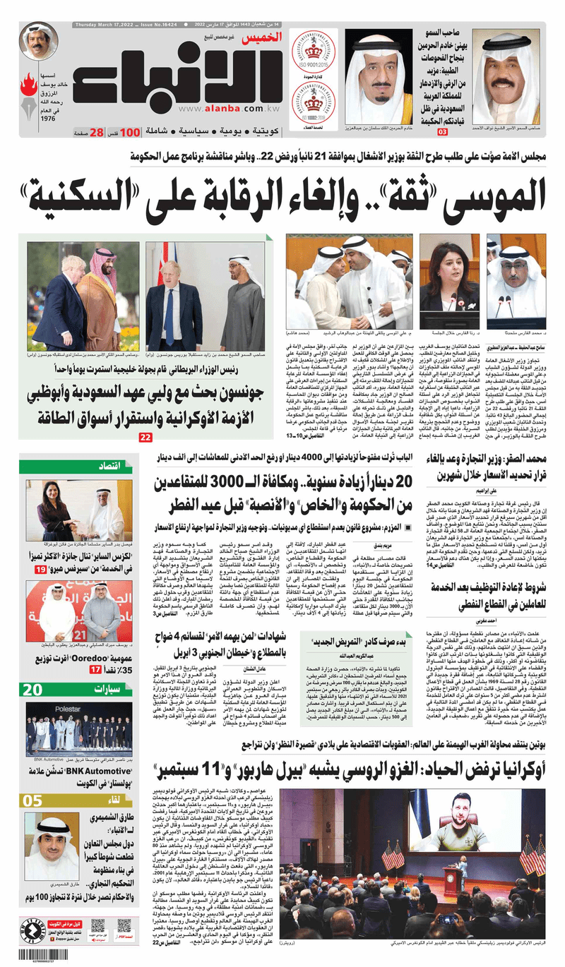 آخر الأخبار جرائم وقضايا “الجمارك” تضبط 29 ألف علبة مشروبات كحولية قادمة من دولة آسيوية في ميناء الشويخ 9 يونيو، 2024 محليات ممثلة عن دولة الكويت الطبيبة الكويتية أسماء الكندري تشارك في المؤتمر العالمي للمناظير في إيطاليا 8 يونيو، 2024 محليات “الصحة”: اكتمال وصول فريق الخدمات الطبية ببعثة الحج الكويتية لمكة المكرمة 8 يونيو، 2024 محليات “الصحة” تحدد 8 مراكز للصحة المدرسية لاستقبال الطلبة المبتعثين 8 يونيو، 2024 عربي وعالمي “الصحة العالمية”: تسجيل أول وفاة لشخص مصاب بـ«أنفلونزا الطيور» 7 يونيو، 2024 محليات عناوين الصحف الكويتية ليوم الخميس 17 مارس 2022 محرر المحليات17 مارس، 2022أضف تعليق1 دقائق جريدة الجريدة جريدة الأنباء جريدة القبس جريدة السياسة جريدة الوطن جريدة الصباح جريدة عرب تايمز الوسومTop عناوين الصحف المحلية من الممكن أن يعجبك جرائم وقضايا “الجمارك” تضبط 29 ألف علبة مشروبات كحولية قادمة من دولة آسيوية في ميناء الشويخ محليات ممثلة عن دولة الكويت الطبيبة الكويتية أسماء الكندري تشارك في المؤتمر العالمي للمناظير في إيطاليا محليات “الصحة”: اكتمال وصول فريق الخدمات الطبية ببعثة الحج الكويتية لمكة المكرمة محليات “الصحة” تحدد 8 مراكز للصحة المدرسية لاستقبال الطلبة المبتعثين عربي وعالمي “الصحة العالمية”: تسجيل أول وفاة لشخص مصاب بـ«أنفلونزا الطيور» تكنولوجيا رش السحب بملح البحر.. تجربة “ثورية” لتبريد كوكب الأرض أضف تعليق أضغط هنا لإضافة تعليق إلغاء الردالتعليقالاسم البريد الإلكتروني الموقع الإلكتروني Δ هذا الموقع يستخدم خدمة أكيسميت للتقليل من البريد المزعجة. اعرف المزيد عن كيفية التعامل مع بيانات التعليقات الخاصة بك processed.