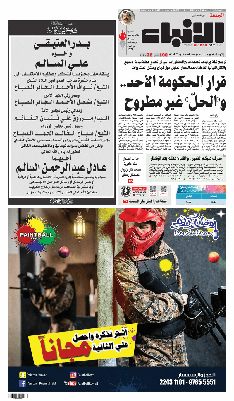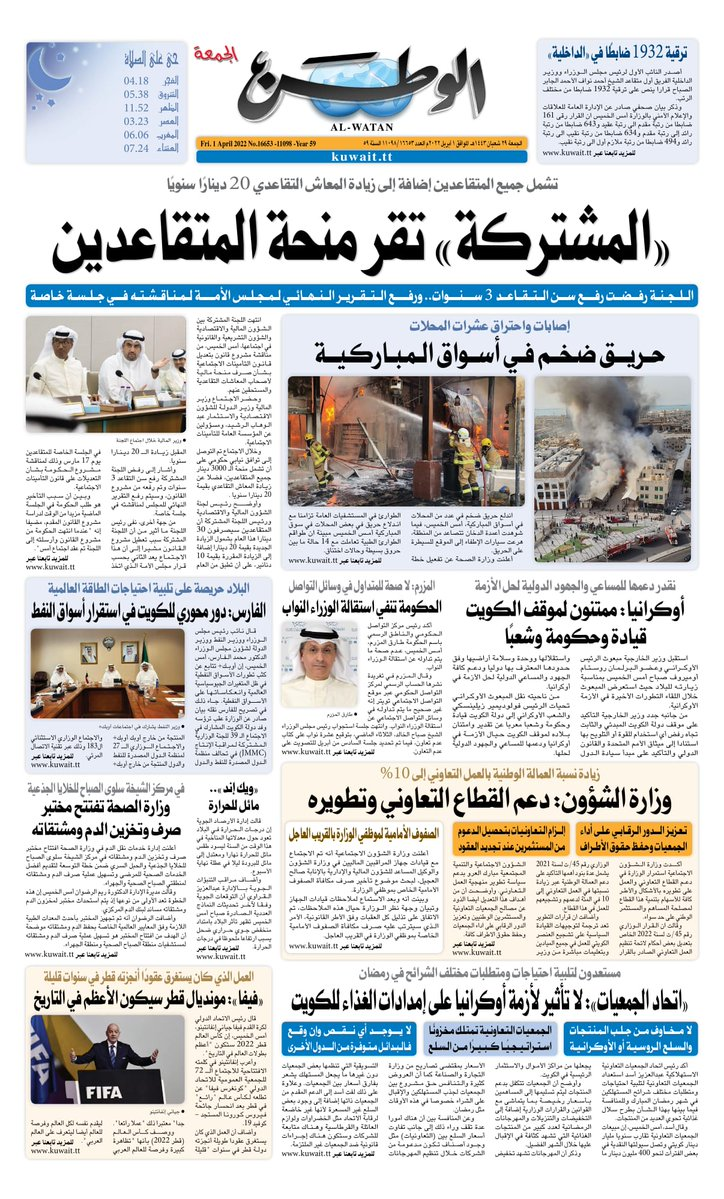 آخر الأخبار جرائم وقضايا “الجمارك” تضبط 29 ألف علبة مشروبات كحولية قادمة من دولة آسيوية في ميناء الشويخ 9 يونيو، 2024 محليات ممثلة عن دولة الكويت الطبيبة الكويتية أسماء الكندري تشارك في المؤتمر العالمي للمناظير في إيطاليا 8 يونيو، 2024 محليات “الصحة”: اكتمال وصول فريق الخدمات الطبية ببعثة الحج الكويتية لمكة المكرمة 8 يونيو، 2024 محليات “الصحة” تحدد 8 مراكز للصحة المدرسية لاستقبال الطلبة المبتعثين 8 يونيو، 2024 عربي وعالمي “الصحة العالمية”: تسجيل أول وفاة لشخص مصاب بـ«أنفلونزا الطيور» 7 يونيو، 2024 محليات عناوين الصحف الكويتية ليوم الجمعة 01 أبريل 2022 محرر المحليات1 أبريل، 2022أضف تعليق1 دقائق جريدة الجريدة جريدة الأنباء جريدة القبس جريدة الوطن جريدة الصباح جريدة عرب تايمز الوسومTop عناوين الصحف المحلية من الممكن أن يعجبك جرائم وقضايا “الجمارك” تضبط 29 ألف علبة مشروبات كحولية قادمة من دولة آسيوية في ميناء الشويخ محليات ممثلة عن دولة الكويت الطبيبة الكويتية أسماء الكندري تشارك في المؤتمر العالمي للمناظير في إيطاليا محليات “الصحة”: اكتمال وصول فريق الخدمات الطبية ببعثة الحج الكويتية لمكة المكرمة محليات “الصحة” تحدد 8 مراكز للصحة المدرسية لاستقبال الطلبة المبتعثين عربي وعالمي “الصحة العالمية”: تسجيل أول وفاة لشخص مصاب بـ«أنفلونزا الطيور» تكنولوجيا رش السحب بملح البحر.. تجربة “ثورية” لتبريد كوكب الأرض أضف تعليق أضغط هنا لإضافة تعليق إلغاء الردالتعليقالاسم البريد الإلكتروني الموقع الإلكتروني Δ هذا الموقع يستخدم خدمة أكيسميت للتقليل من البريد المزعجة. اعرف المزيد عن كيفية التعامل مع بيانات التعليقات الخاصة بك processed.