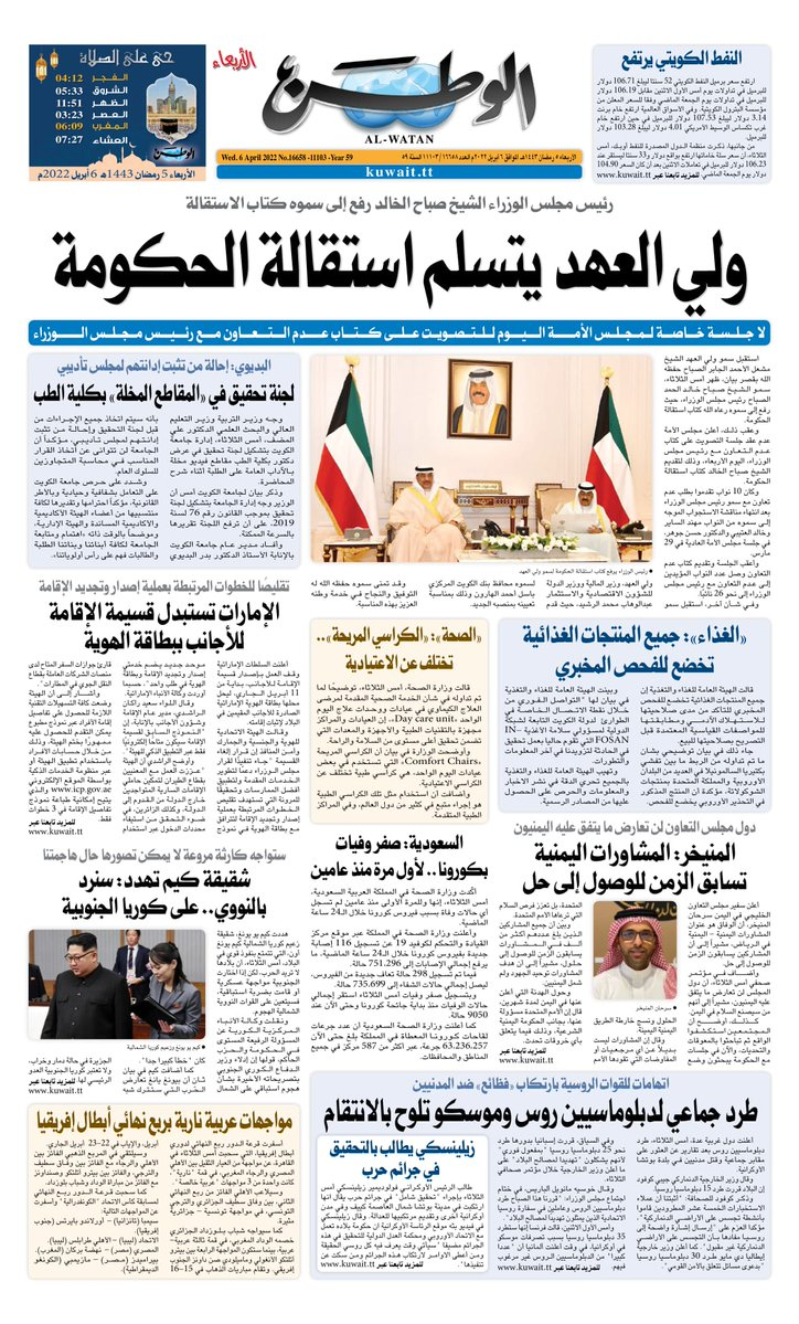 آخر الأخبار جرائم وقضايا “الجمارك” تضبط 29 ألف علبة مشروبات كحولية قادمة من دولة آسيوية في ميناء الشويخ 9 يونيو، 2024 محليات ممثلة عن دولة الكويت الطبيبة الكويتية أسماء الكندري تشارك في المؤتمر العالمي للمناظير في إيطاليا 8 يونيو، 2024 محليات “الصحة”: اكتمال وصول فريق الخدمات الطبية ببعثة الحج الكويتية لمكة المكرمة 8 يونيو، 2024 محليات “الصحة” تحدد 8 مراكز للصحة المدرسية لاستقبال الطلبة المبتعثين 8 يونيو، 2024 عربي وعالمي “الصحة العالمية”: تسجيل أول وفاة لشخص مصاب بـ«أنفلونزا الطيور» 7 يونيو، 2024 محليات عناوين الصحف الكويتية ليوم الأربعاء 06 أبريل 2022 محرر المحليات6 أبريل، 2022أضف تعليق1 دقائق جريدة الجريدة جريدة الأنباء جريدة القبس جريدة السياسة جريدة الوطن جريدة الصباح جريدة عرب تايمز الوسومTop عناوين الصحف المحلية من الممكن أن يعجبك جرائم وقضايا “الجمارك” تضبط 29 ألف علبة مشروبات كحولية قادمة من دولة آسيوية في ميناء الشويخ محليات ممثلة عن دولة الكويت الطبيبة الكويتية أسماء الكندري تشارك في المؤتمر العالمي للمناظير في إيطاليا محليات “الصحة”: اكتمال وصول فريق الخدمات الطبية ببعثة الحج الكويتية لمكة المكرمة محليات “الصحة” تحدد 8 مراكز للصحة المدرسية لاستقبال الطلبة المبتعثين عربي وعالمي “الصحة العالمية”: تسجيل أول وفاة لشخص مصاب بـ«أنفلونزا الطيور» تكنولوجيا رش السحب بملح البحر.. تجربة “ثورية” لتبريد كوكب الأرض أضف تعليق أضغط هنا لإضافة تعليق إلغاء الردالتعليقالاسم البريد الإلكتروني الموقع الإلكتروني Δ هذا الموقع يستخدم خدمة أكيسميت للتقليل من البريد المزعجة. اعرف المزيد عن كيفية التعامل مع بيانات التعليقات الخاصة بك processed.