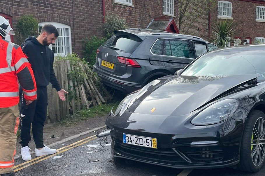 برونو فرنانديز لاعب مانشستر يونايتد يتعرض لحادث سير