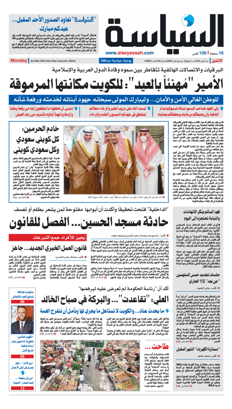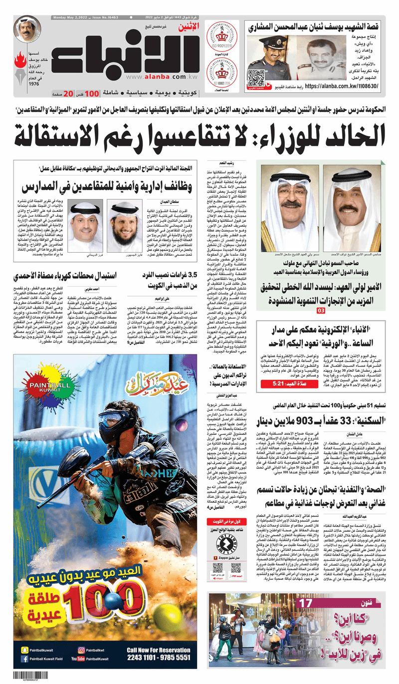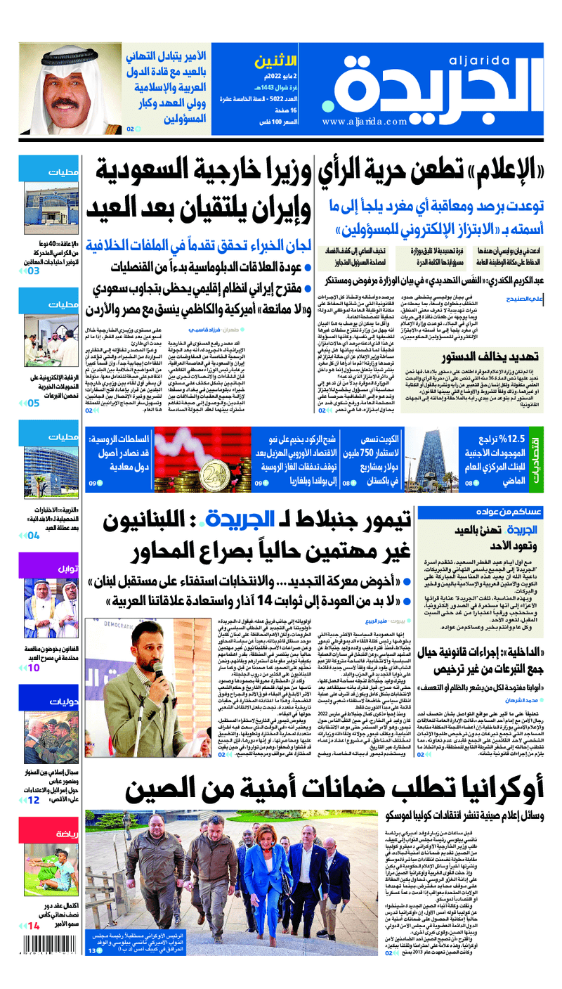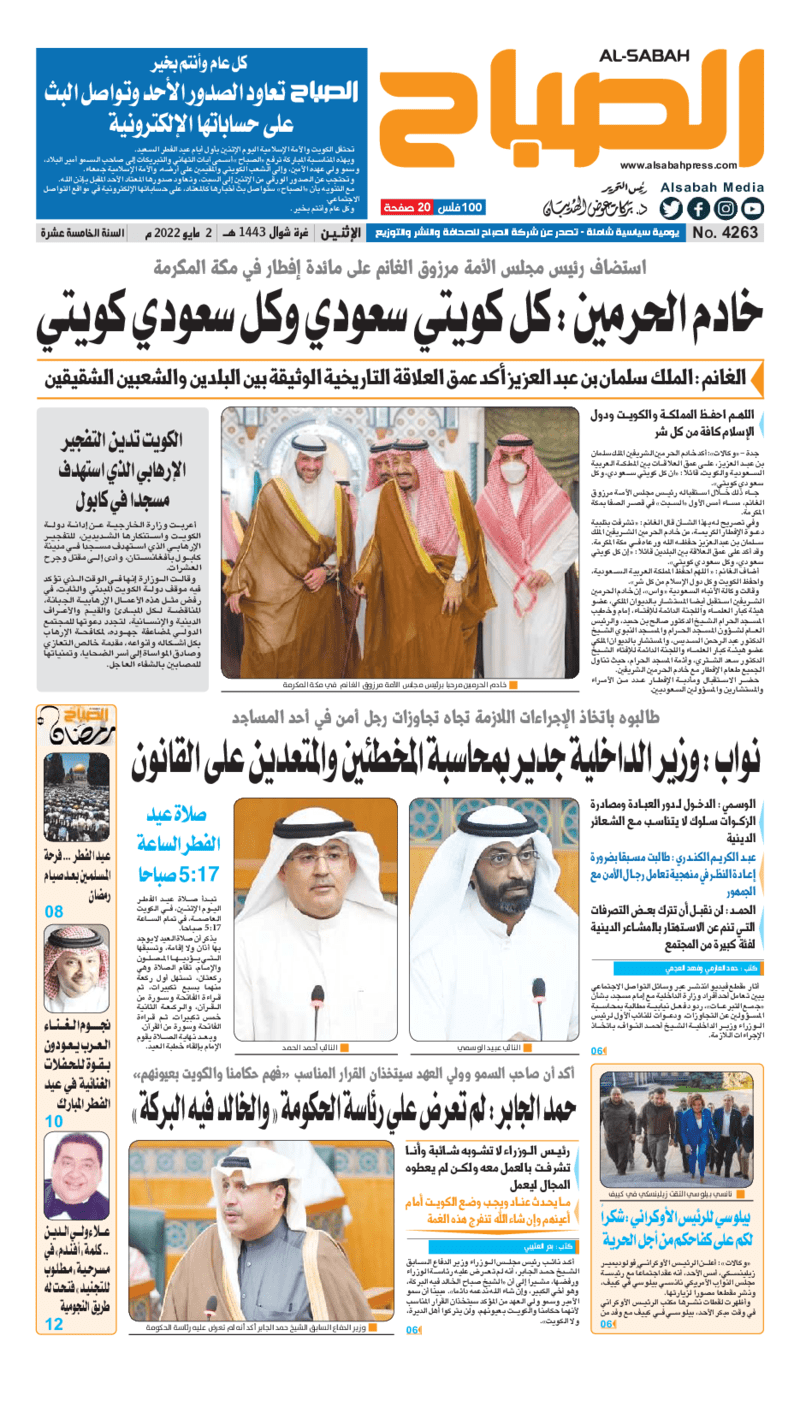 آخر الأخبار جرائم وقضايا “الجمارك” تضبط 29 ألف علبة مشروبات كحولية قادمة من دولة آسيوية في ميناء الشويخ 9 يونيو، 2024 محليات ممثلة عن دولة الكويت الطبيبة الكويتية أسماء الكندري تشارك في المؤتمر العالمي للمناظير في إيطاليا 8 يونيو، 2024 محليات “الصحة”: اكتمال وصول فريق الخدمات الطبية ببعثة الحج الكويتية لمكة المكرمة 8 يونيو، 2024 محليات “الصحة” تحدد 8 مراكز للصحة المدرسية لاستقبال الطلبة المبتعثين 8 يونيو، 2024 عربي وعالمي “الصحة العالمية”: تسجيل أول وفاة لشخص مصاب بـ«أنفلونزا الطيور» 7 يونيو، 2024 محليات عناوين الصحف الكويتية ليوم الاثنين 02 مايو 2022 محرر المحليات2 مايو، 2022أضف تعليق1 دقائق جريدة الجريدة جريدة الأنباء جريدة القبس جريدة السياسة جريدة الوطن جريدة الصباح جريدة عرب تايمز الوسومTop عناوين الصحف المحلية من الممكن أن يعجبك جرائم وقضايا “الجمارك” تضبط 29 ألف علبة مشروبات كحولية قادمة من دولة آسيوية في ميناء الشويخ محليات ممثلة عن دولة الكويت الطبيبة الكويتية أسماء الكندري تشارك في المؤتمر العالمي للمناظير في إيطاليا محليات “الصحة”: اكتمال وصول فريق الخدمات الطبية ببعثة الحج الكويتية لمكة المكرمة محليات “الصحة” تحدد 8 مراكز للصحة المدرسية لاستقبال الطلبة المبتعثين عربي وعالمي “الصحة العالمية”: تسجيل أول وفاة لشخص مصاب بـ«أنفلونزا الطيور» تكنولوجيا رش السحب بملح البحر.. تجربة “ثورية” لتبريد كوكب الأرض أضف تعليق أضغط هنا لإضافة تعليق إلغاء الردالتعليقالاسم البريد الإلكتروني الموقع الإلكتروني Δ هذا الموقع يستخدم خدمة أكيسميت للتقليل من البريد المزعجة. اعرف المزيد عن كيفية التعامل مع بيانات التعليقات الخاصة بك processed.