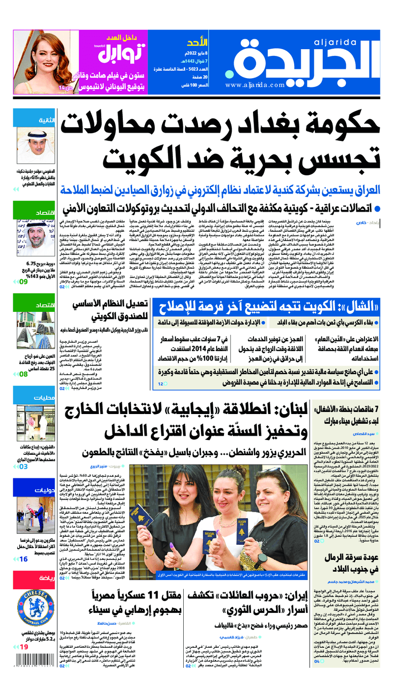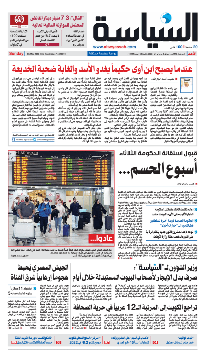 آخر الأخبار جرائم وقضايا “الجمارك” تضبط 29 ألف علبة مشروبات كحولية قادمة من دولة آسيوية في ميناء الشويخ 9 يونيو، 2024 محليات ممثلة عن دولة الكويت الطبيبة الكويتية أسماء الكندري تشارك في المؤتمر العالمي للمناظير في إيطاليا 8 يونيو، 2024 محليات “الصحة”: اكتمال وصول فريق الخدمات الطبية ببعثة الحج الكويتية لمكة المكرمة 8 يونيو، 2024 محليات “الصحة” تحدد 8 مراكز للصحة المدرسية لاستقبال الطلبة المبتعثين 8 يونيو، 2024 عربي وعالمي “الصحة العالمية”: تسجيل أول وفاة لشخص مصاب بـ«أنفلونزا الطيور» 7 يونيو، 2024 محليات عناوين الصحف الكويتية ليوم الأحد 08 مايو 2022 محرر المحليات8 مايو، 2022أضف تعليق1 دقائق جريدة الجريدة جريدة الأنباء جريدة القبس جريدة السياسة جريدة الوطن جريدة الصباح جريدة عرب تايمز الوسومTop عناوين الصحف المحلية من الممكن أن يعجبك جرائم وقضايا “الجمارك” تضبط 29 ألف علبة مشروبات كحولية قادمة من دولة آسيوية في ميناء الشويخ محليات ممثلة عن دولة الكويت الطبيبة الكويتية أسماء الكندري تشارك في المؤتمر العالمي للمناظير في إيطاليا محليات “الصحة”: اكتمال وصول فريق الخدمات الطبية ببعثة الحج الكويتية لمكة المكرمة محليات “الصحة” تحدد 8 مراكز للصحة المدرسية لاستقبال الطلبة المبتعثين عربي وعالمي “الصحة العالمية”: تسجيل أول وفاة لشخص مصاب بـ«أنفلونزا الطيور» تكنولوجيا رش السحب بملح البحر.. تجربة “ثورية” لتبريد كوكب الأرض أضف تعليق أضغط هنا لإضافة تعليق إلغاء الردالتعليقالاسم البريد الإلكتروني الموقع الإلكتروني Δ هذا الموقع يستخدم خدمة أكيسميت للتقليل من البريد المزعجة. اعرف المزيد عن كيفية التعامل مع بيانات التعليقات الخاصة بك processed.