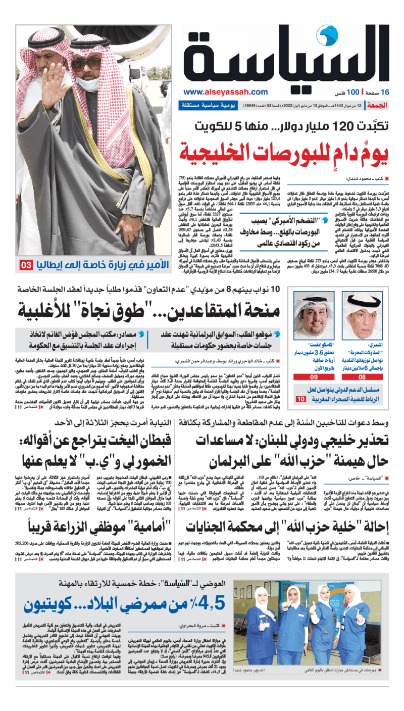 آخر الأخبار جرائم وقضايا “الجمارك” تضبط 29 ألف علبة مشروبات كحولية قادمة من دولة آسيوية في ميناء الشويخ 9 يونيو، 2024 محليات ممثلة عن دولة الكويت الطبيبة الكويتية أسماء الكندري تشارك في المؤتمر العالمي للمناظير في إيطاليا 8 يونيو، 2024 محليات “الصحة”: اكتمال وصول فريق الخدمات الطبية ببعثة الحج الكويتية لمكة المكرمة 8 يونيو، 2024 محليات “الصحة” تحدد 8 مراكز للصحة المدرسية لاستقبال الطلبة المبتعثين 8 يونيو، 2024 عربي وعالمي “الصحة العالمية”: تسجيل أول وفاة لشخص مصاب بـ«أنفلونزا الطيور» 7 يونيو، 2024 محليات عناوين الصحف الكويتية ليوم الجمعة 13 مايو 2022 محرر المحليات13 مايو، 2022أضف تعليق1 دقائق جريدة الجريدة جريدة الأنباء جريدة القبس جريدة السياسة جريدة الوطن جريدة الصباح جريدة عرب تايمز الوسومTop عناوين الصحف المحلية من الممكن أن يعجبك جرائم وقضايا “الجمارك” تضبط 29 ألف علبة مشروبات كحولية قادمة من دولة آسيوية في ميناء الشويخ محليات ممثلة عن دولة الكويت الطبيبة الكويتية أسماء الكندري تشارك في المؤتمر العالمي للمناظير في إيطاليا محليات “الصحة”: اكتمال وصول فريق الخدمات الطبية ببعثة الحج الكويتية لمكة المكرمة محليات “الصحة” تحدد 8 مراكز للصحة المدرسية لاستقبال الطلبة المبتعثين عربي وعالمي “الصحة العالمية”: تسجيل أول وفاة لشخص مصاب بـ«أنفلونزا الطيور» تكنولوجيا رش السحب بملح البحر.. تجربة “ثورية” لتبريد كوكب الأرض أضف تعليق أضغط هنا لإضافة تعليق إلغاء الردالتعليقالاسم البريد الإلكتروني الموقع الإلكتروني Δ هذا الموقع يستخدم خدمة أكيسميت للتقليل من البريد المزعجة. اعرف المزيد عن كيفية التعامل مع بيانات التعليقات الخاصة بك processed.