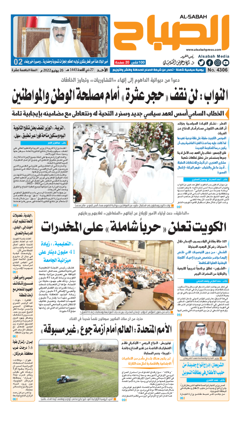 آخر الأخبار جرائم وقضايا “الجمارك” تضبط 29 ألف علبة مشروبات كحولية قادمة من دولة آسيوية في ميناء الشويخ 9 يونيو، 2024 محليات ممثلة عن دولة الكويت الطبيبة الكويتية أسماء الكندري تشارك في المؤتمر العالمي للمناظير في إيطاليا 8 يونيو، 2024 محليات “الصحة”: اكتمال وصول فريق الخدمات الطبية ببعثة الحج الكويتية لمكة المكرمة 8 يونيو، 2024 محليات “الصحة” تحدد 8 مراكز للصحة المدرسية لاستقبال الطلبة المبتعثين 8 يونيو، 2024 عربي وعالمي “الصحة العالمية”: تسجيل أول وفاة لشخص مصاب بـ«أنفلونزا الطيور» 7 يونيو، 2024 محليات عناوين الصحف الكويتية ليوم الأحد 26 يونيو 2022 محرر المحليات26 يونيو، 2022أضف تعليق1 دقائق جريدة الجريدة جريدة الأنباء جريدة القبس جريدة السياسة جريدة الوطن جريدة الصباح جريدة عرب تايمز الوسومTop عناوين الصحف المحلية من الممكن أن يعجبك جرائم وقضايا “الجمارك” تضبط 29 ألف علبة مشروبات كحولية قادمة من دولة آسيوية في ميناء الشويخ محليات ممثلة عن دولة الكويت الطبيبة الكويتية أسماء الكندري تشارك في المؤتمر العالمي للمناظير في إيطاليا محليات “الصحة”: اكتمال وصول فريق الخدمات الطبية ببعثة الحج الكويتية لمكة المكرمة محليات “الصحة” تحدد 8 مراكز للصحة المدرسية لاستقبال الطلبة المبتعثين عربي وعالمي “الصحة العالمية”: تسجيل أول وفاة لشخص مصاب بـ«أنفلونزا الطيور» تكنولوجيا رش السحب بملح البحر.. تجربة “ثورية” لتبريد كوكب الأرض أضف تعليق أضغط هنا لإضافة تعليق إلغاء الردالتعليقالاسم البريد الإلكتروني الموقع الإلكتروني Δ هذا الموقع يستخدم خدمة أكيسميت للتقليل من البريد المزعجة. اعرف المزيد عن كيفية التعامل مع بيانات التعليقات الخاصة بك processed.