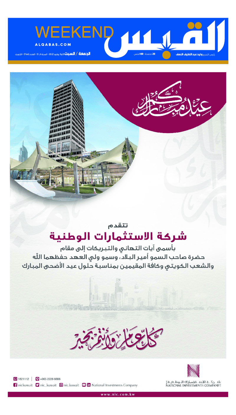 آخر الأخبار جرائم وقضايا “الجمارك” تضبط 29 ألف علبة مشروبات كحولية قادمة من دولة آسيوية في ميناء الشويخ 9 يونيو، 2024 محليات ممثلة عن دولة الكويت الطبيبة الكويتية أسماء الكندري تشارك في المؤتمر العالمي للمناظير في إيطاليا 8 يونيو، 2024 محليات “الصحة”: اكتمال وصول فريق الخدمات الطبية ببعثة الحج الكويتية لمكة المكرمة 8 يونيو، 2024 محليات “الصحة” تحدد 8 مراكز للصحة المدرسية لاستقبال الطلبة المبتعثين 8 يونيو، 2024 عربي وعالمي “الصحة العالمية”: تسجيل أول وفاة لشخص مصاب بـ«أنفلونزا الطيور» 7 يونيو، 2024 محليات عناوين الصحف الكويتية ليوم الاثنين 11 يوليو 2022 محرر المحليات11 يوليو، 2022أضف تعليق1 دقائق جريدة الجريدة جريدة القبس جريدة الوطن الوسومTop عناوين الصحف المحلية من الممكن أن يعجبك جرائم وقضايا “الجمارك” تضبط 29 ألف علبة مشروبات كحولية قادمة من دولة آسيوية في ميناء الشويخ محليات ممثلة عن دولة الكويت الطبيبة الكويتية أسماء الكندري تشارك في المؤتمر العالمي للمناظير في إيطاليا محليات “الصحة”: اكتمال وصول فريق الخدمات الطبية ببعثة الحج الكويتية لمكة المكرمة محليات “الصحة” تحدد 8 مراكز للصحة المدرسية لاستقبال الطلبة المبتعثين عربي وعالمي “الصحة العالمية”: تسجيل أول وفاة لشخص مصاب بـ«أنفلونزا الطيور» تكنولوجيا رش السحب بملح البحر.. تجربة “ثورية” لتبريد كوكب الأرض أضف تعليق أضغط هنا لإضافة تعليق إلغاء الردالتعليقالاسم البريد الإلكتروني الموقع الإلكتروني Δ هذا الموقع يستخدم خدمة أكيسميت للتقليل من البريد المزعجة. اعرف المزيد عن كيفية التعامل مع بيانات التعليقات الخاصة بك processed.