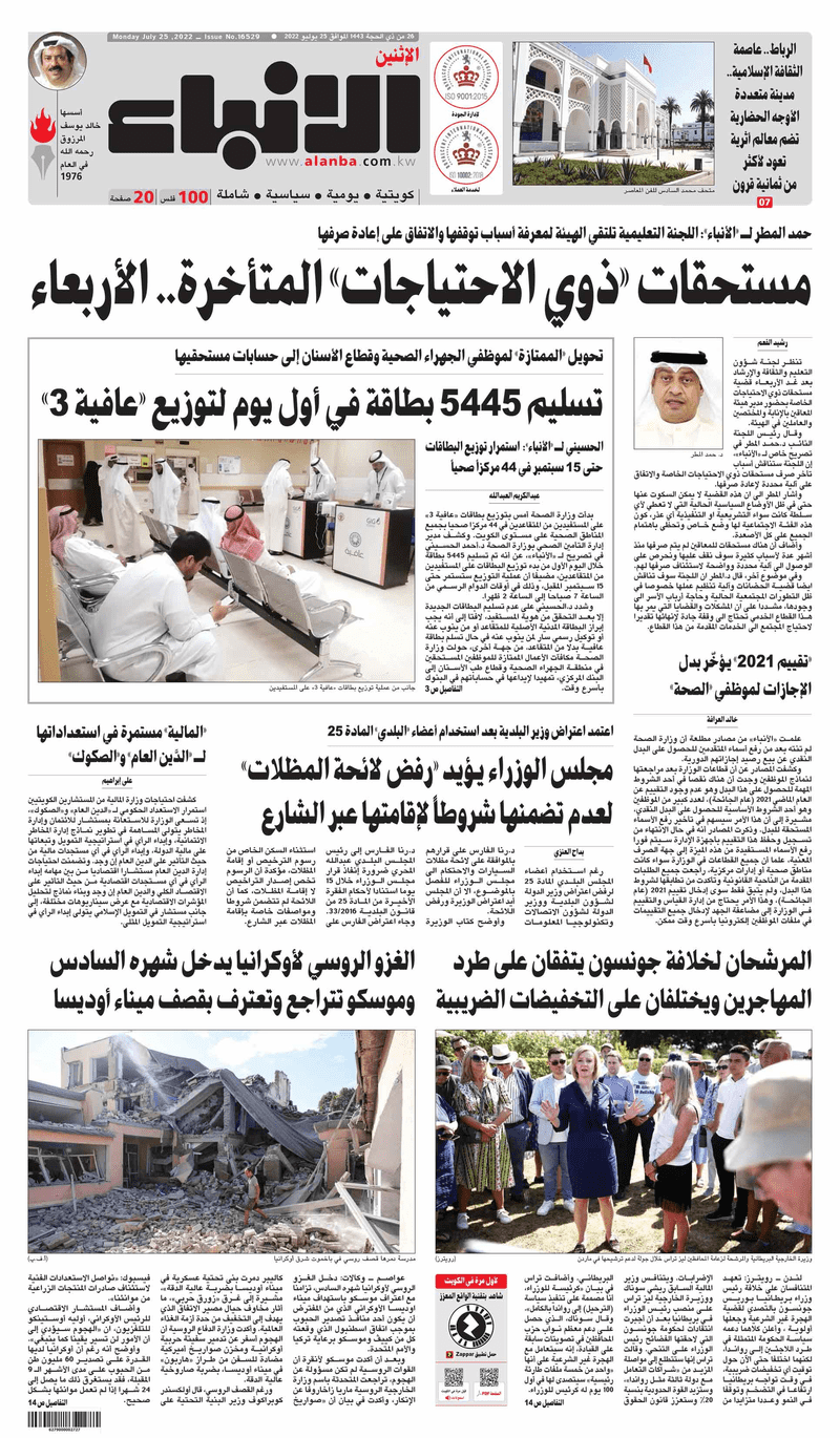 آخر الأخبار جرائم وقضايا “الجمارك” تضبط 29 ألف علبة مشروبات كحولية قادمة من دولة آسيوية في ميناء الشويخ 9 يونيو، 2024 محليات ممثلة عن دولة الكويت الطبيبة الكويتية أسماء الكندري تشارك في المؤتمر العالمي للمناظير في إيطاليا 8 يونيو، 2024 محليات “الصحة”: اكتمال وصول فريق الخدمات الطبية ببعثة الحج الكويتية لمكة المكرمة 8 يونيو، 2024 محليات “الصحة” تحدد 8 مراكز للصحة المدرسية لاستقبال الطلبة المبتعثين 8 يونيو، 2024 عربي وعالمي “الصحة العالمية”: تسجيل أول وفاة لشخص مصاب بـ«أنفلونزا الطيور» 7 يونيو، 2024 محليات عناوين الصحف الكويتية ليوم الاثنين 25 يوليو 2022 محرر المحليات25 يوليو، 2022أضف تعليق1 دقائق جريدة الجريدة جريدة الأنباء جريدة القبس جريدة السياسة جريدة الوطن جريدة النهار جريدة الصباح الوسومTop عناوين الصحف المحلية من الممكن أن يعجبك جرائم وقضايا “الجمارك” تضبط 29 ألف علبة مشروبات كحولية قادمة من دولة آسيوية في ميناء الشويخ محليات ممثلة عن دولة الكويت الطبيبة الكويتية أسماء الكندري تشارك في المؤتمر العالمي للمناظير في إيطاليا محليات “الصحة”: اكتمال وصول فريق الخدمات الطبية ببعثة الحج الكويتية لمكة المكرمة محليات “الصحة” تحدد 8 مراكز للصحة المدرسية لاستقبال الطلبة المبتعثين عربي وعالمي “الصحة العالمية”: تسجيل أول وفاة لشخص مصاب بـ«أنفلونزا الطيور» تكنولوجيا رش السحب بملح البحر.. تجربة “ثورية” لتبريد كوكب الأرض أضف تعليق أضغط هنا لإضافة تعليق إلغاء الردالتعليقالاسم البريد الإلكتروني الموقع الإلكتروني Δ هذا الموقع يستخدم خدمة أكيسميت للتقليل من البريد المزعجة. اعرف المزيد عن كيفية التعامل مع بيانات التعليقات الخاصة بك processed.